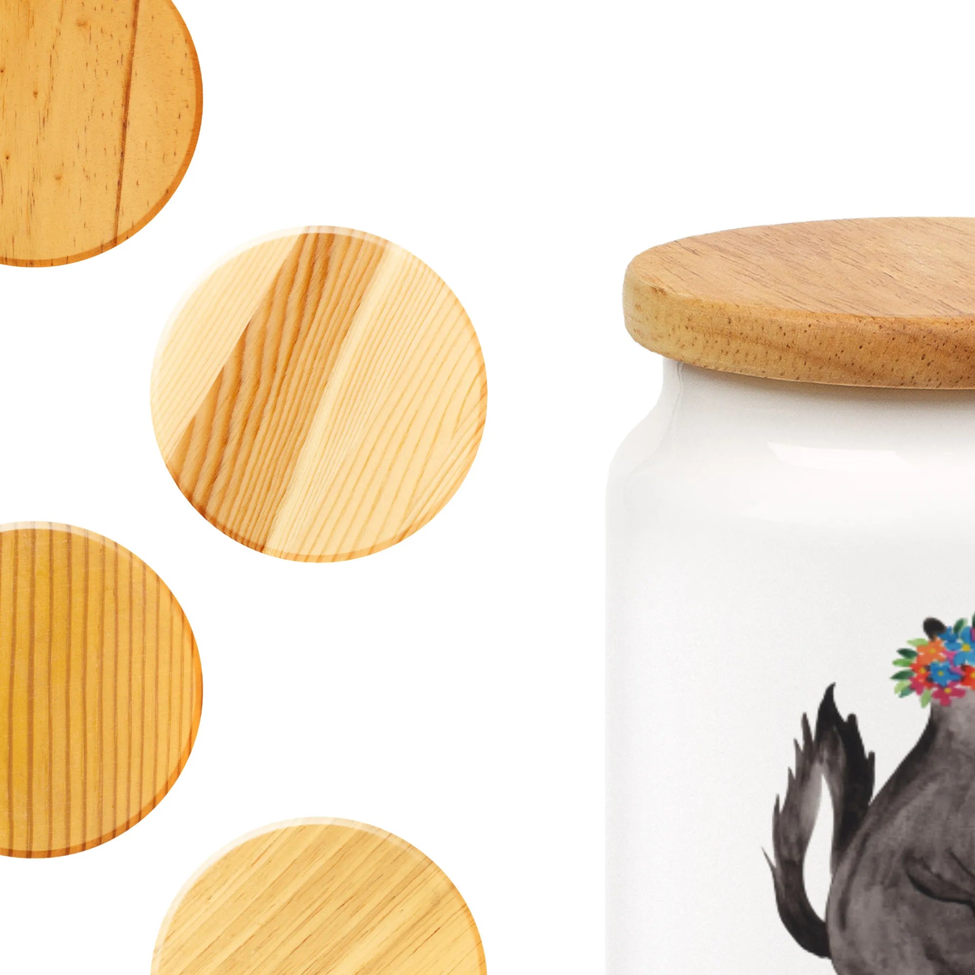 🐼 High-quality ceramic with a rustic wood lid ensures durability and freshness.