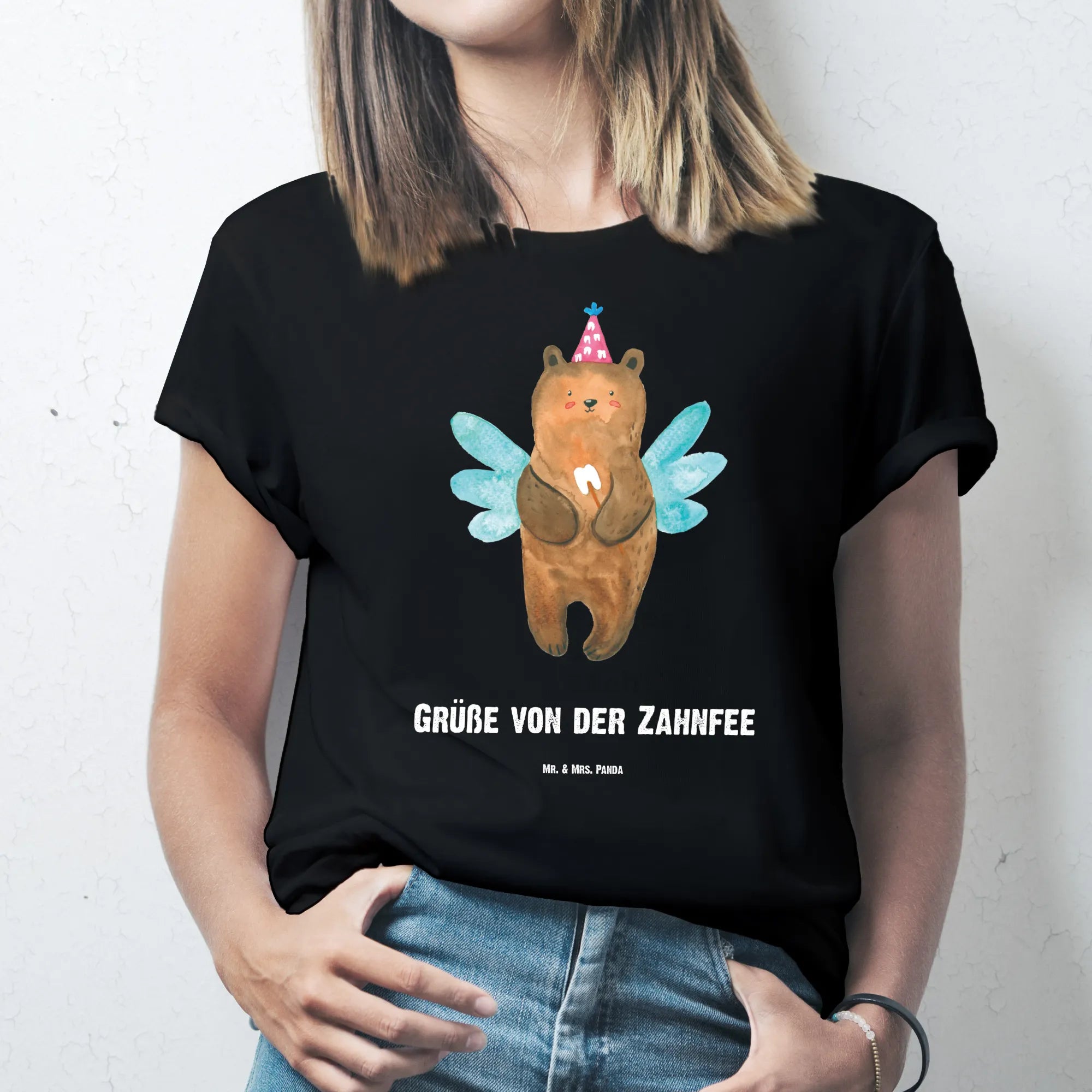 Meet our charming Tooth Fairy Bear, a delightful little creature fluttering about with its dainty wings and sparkly wand. With its cozy fairy hat perched atop its head, it's on a mission to collect precious milk teeth and spread magic to every child. The saying 'Greetings from the Tooth Fairy' perfectly captures this whimsical moment. When your little one loses that first tooth, it's a moment filled with excitement and a sprinkle of wonder as the Tooth Fairy Bear appears to turn the milestone into a sweet memory. Celebrate the joy of growing up and the magic that comes with it through this enchanting motif, perfect for decorating a nursery or a child’s room. Let the Tooth Fairy Bear remind you that even the smallest moments of childhood can be filled with fairy-tale charm, transforming bedtime stories into magical adventures of joy and excitement.