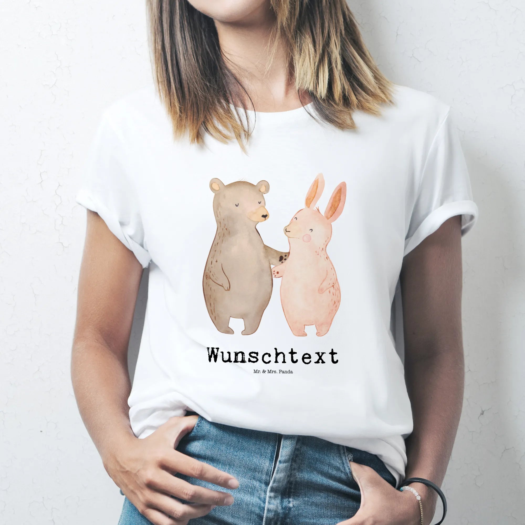 Personalised T-Shirt bear and rabbit Embrace - Size XXL Personalized T-Shirt - White