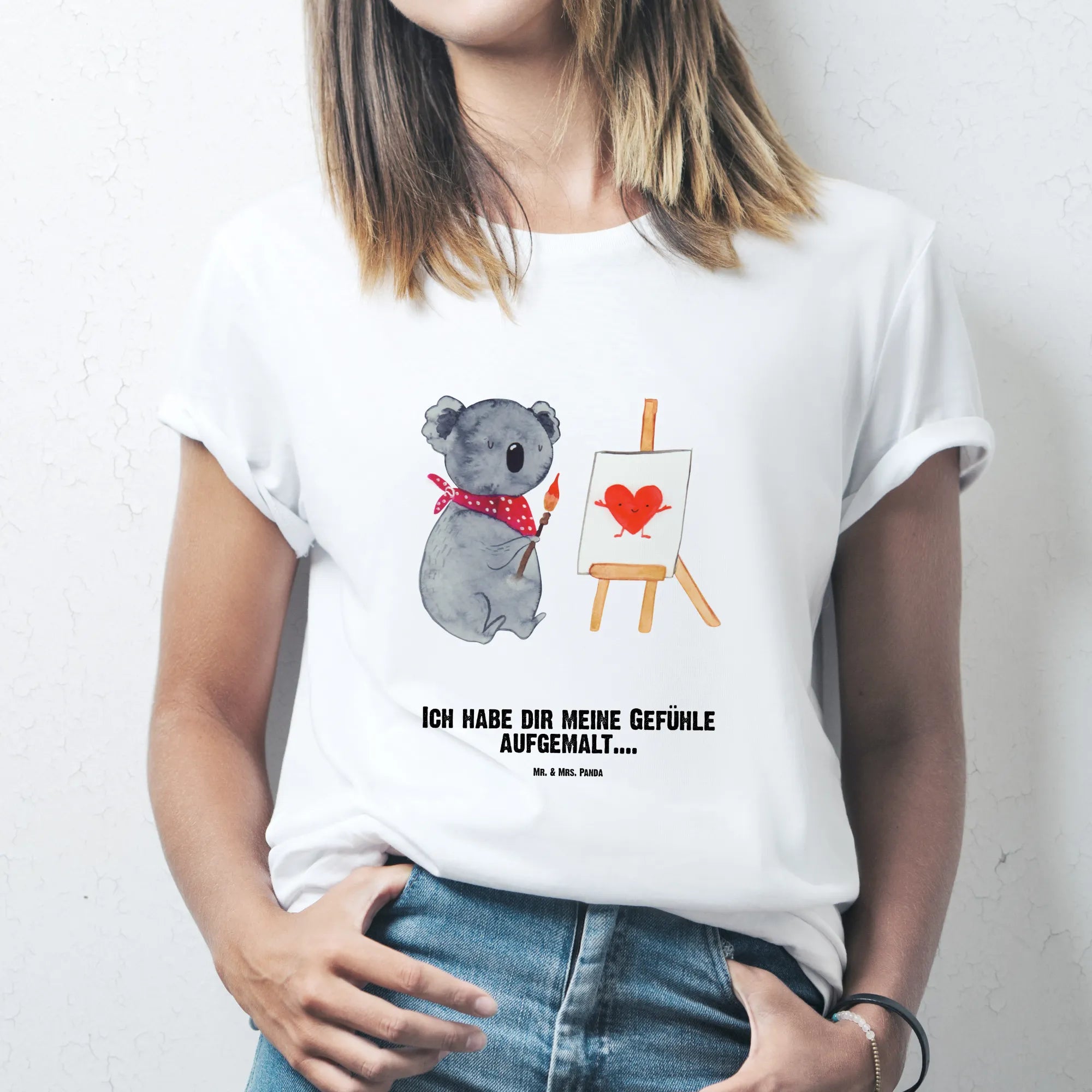 Step into a vibrant world of love and art with our delightful koala, who has taken it upon himself to share his deepest emotions via paint. Each brushstroke holds a piece of his soul, beautifully captured in the sentiment, "Ich habe dir meine Gefühle aufgemalt..." This enchanting motif is a celebration of the bond we share with our loved ones, making it an ideal gift for those who appreciate both love and artistry. Imagine a dear friend or family member receiving this heartfelt piece – the joy it brings elevates the spirit and brightens any space. Our little koala artist is not just crafting a picture; he’s crafting memories, turning feelings into a stunning representation of affection. This design is a gentle reminder that we all have the power to create, connect, and celebrate love through our own unique forms of expression.