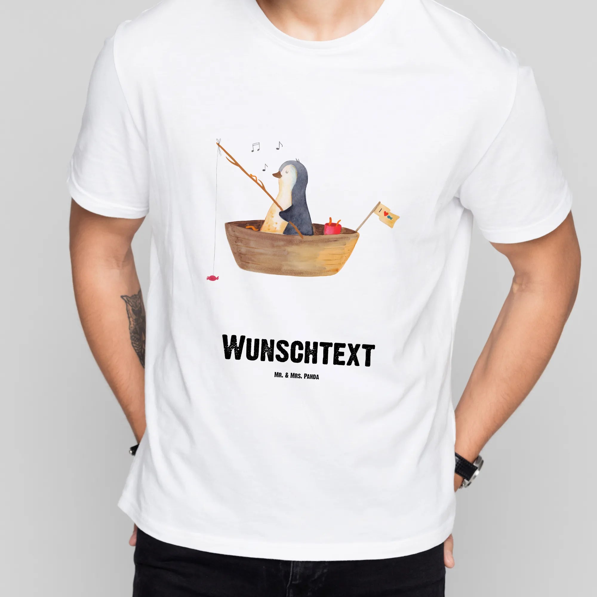 Personalised T-Shirt Penguin fishing boat - Size XXL Personalized T-Shirt - White