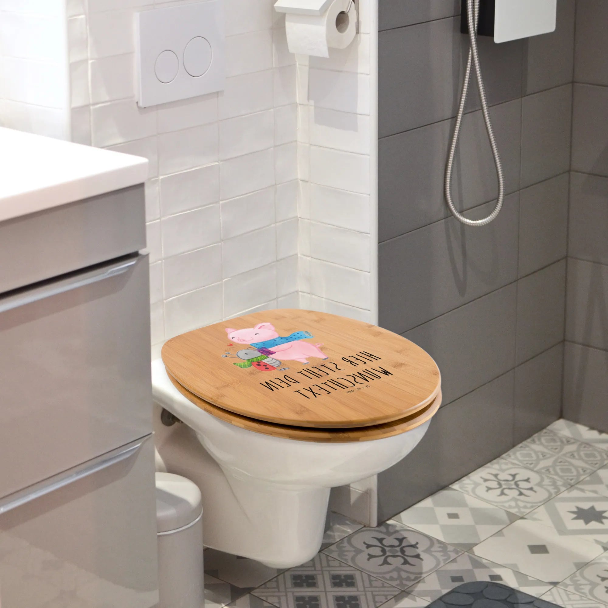 Personalized Toilet Seat Design Glow Pig Snuggle - Bamboo