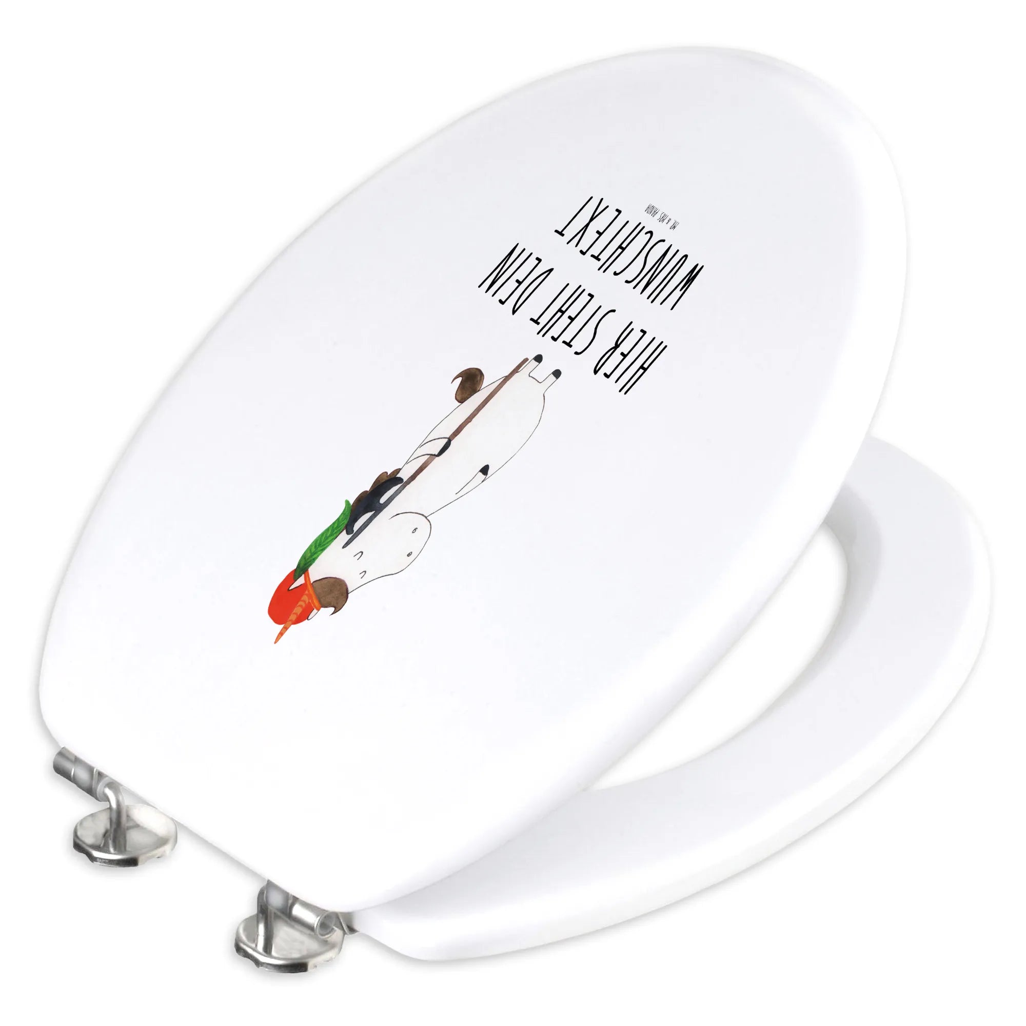 The personalized toilet lid is lovingly printed with a high-quality Mr. & Mrs. Panda design, created by Mrs. Panda to bring more joy into your bathroom.