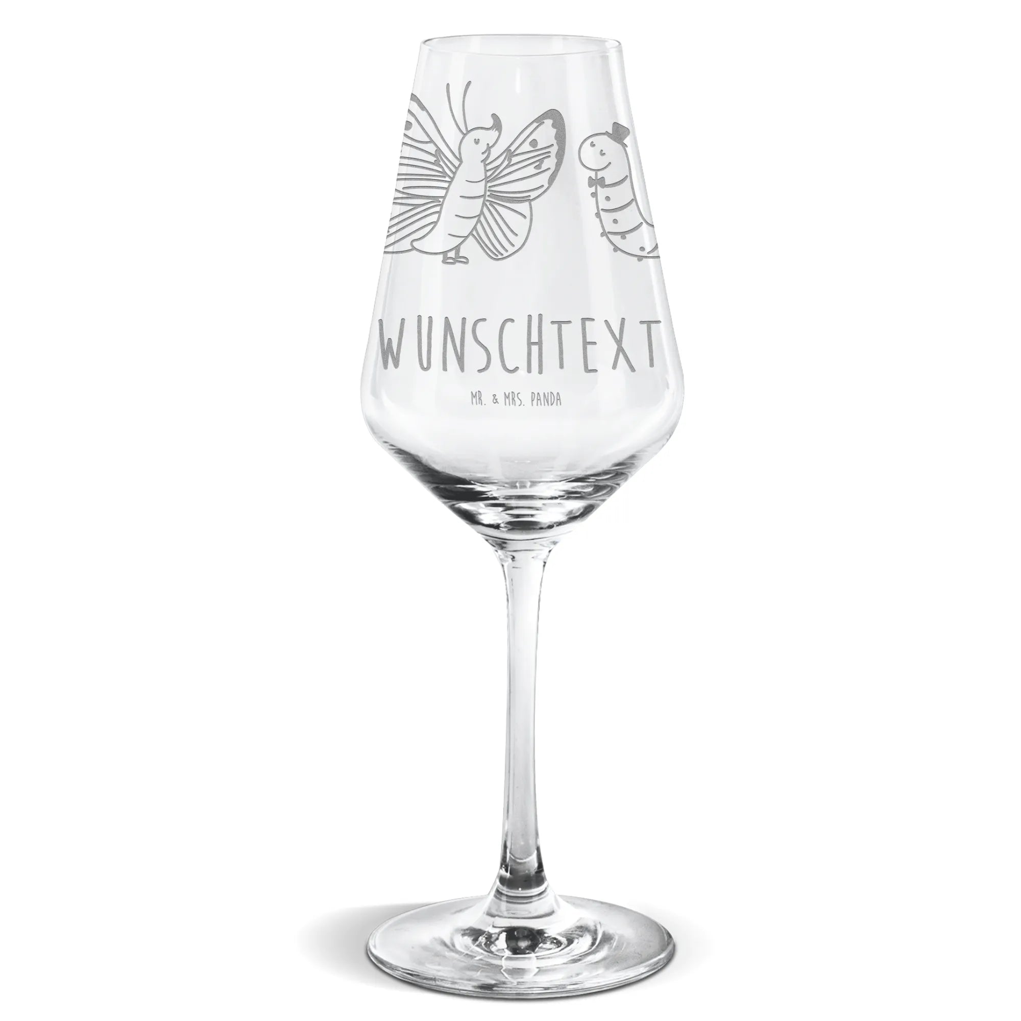 Personalized White Wine Glass Caterpillar butterfly small animals, cute, funny, cute animal motives, hand drawn, small world, funny sayings, good mood, happy, gifts, gift ideas, special gifts, animal lover, card, growing up, hat, Caterpillar, development, lemon butterfly, beauty, butterfly, cocoon
