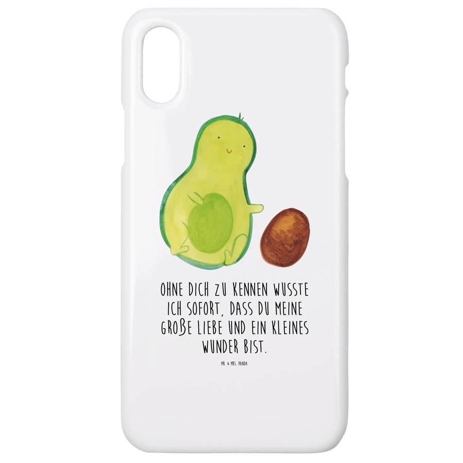 Made from high-quality 3D premium plastic, this mobile phone sleeve ensures that the iPhone XR is well-protected from scratches, bumps, and everyday hazards. Whether it's for a new parent celebrating the arrival of their first child or a close friend with a passion for healthy living, this phone sleeve provides a practical solution without compromising on style. The charming avocado motif, hand-drawn with love by Mrs. Panda, depicts a cute little avocado rolling its pit in a playful scene that brings smiles and warmth.