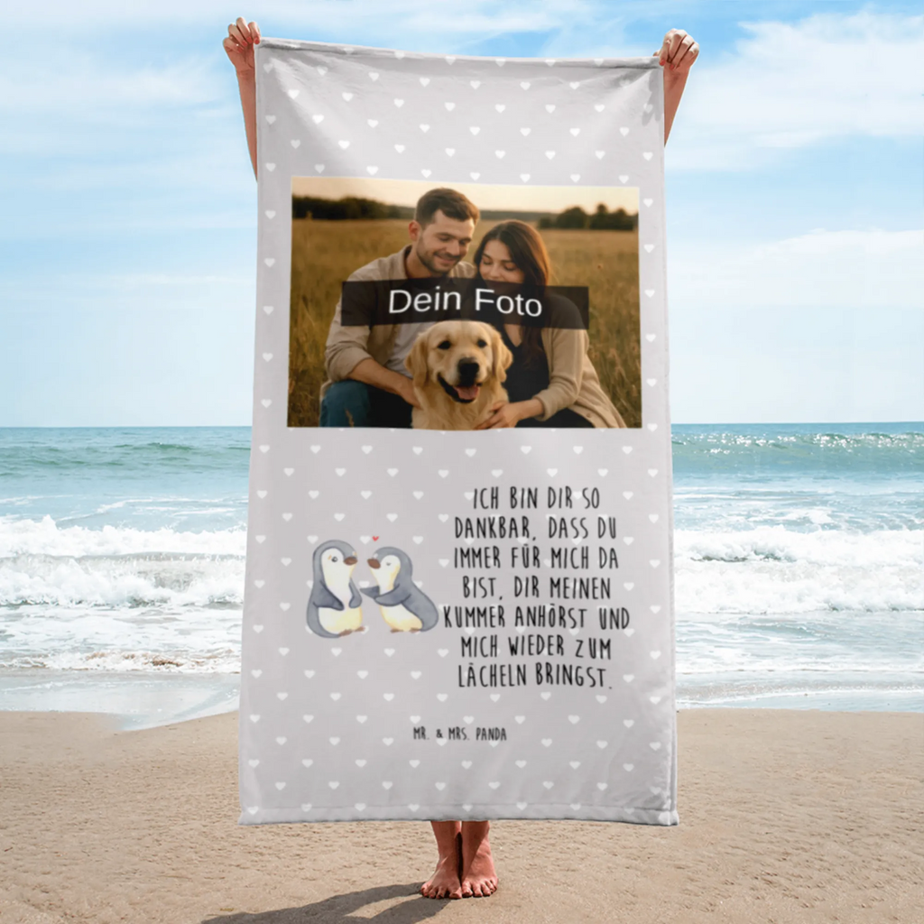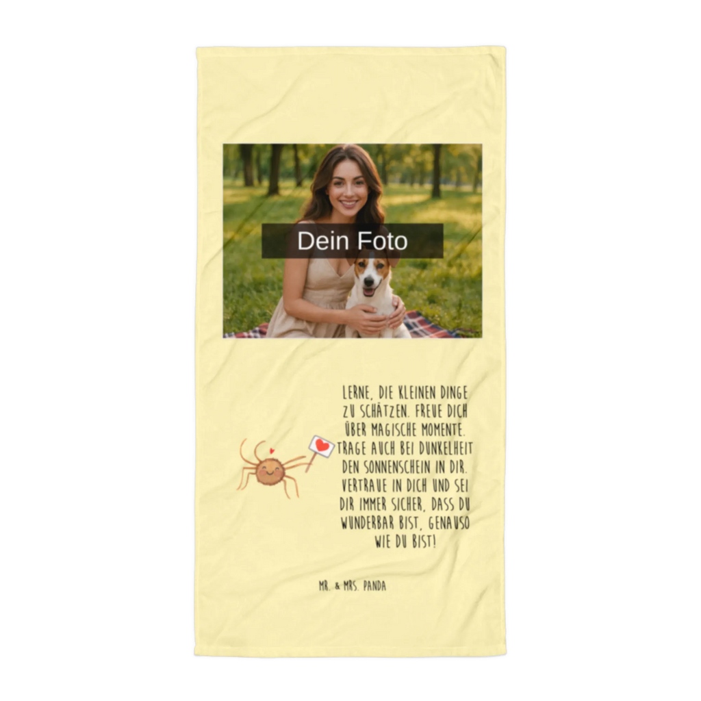 Experience the exciting world of personalized bath towels with our unique photo towel from Mr. & Mrs. Panda. Perfectly printed with your favorite memories, this towel combines high quality with personal touches. Whether as a unique gift or a daily feel-good highlight, the fluffy cotton terry guarantees softness and comfort. With its generous size of 1520 x 760 cm and the extra absorbent terry backing, it is ideal for the beach, pool, or sauna. Customize your towel for an unforgettable impression.
