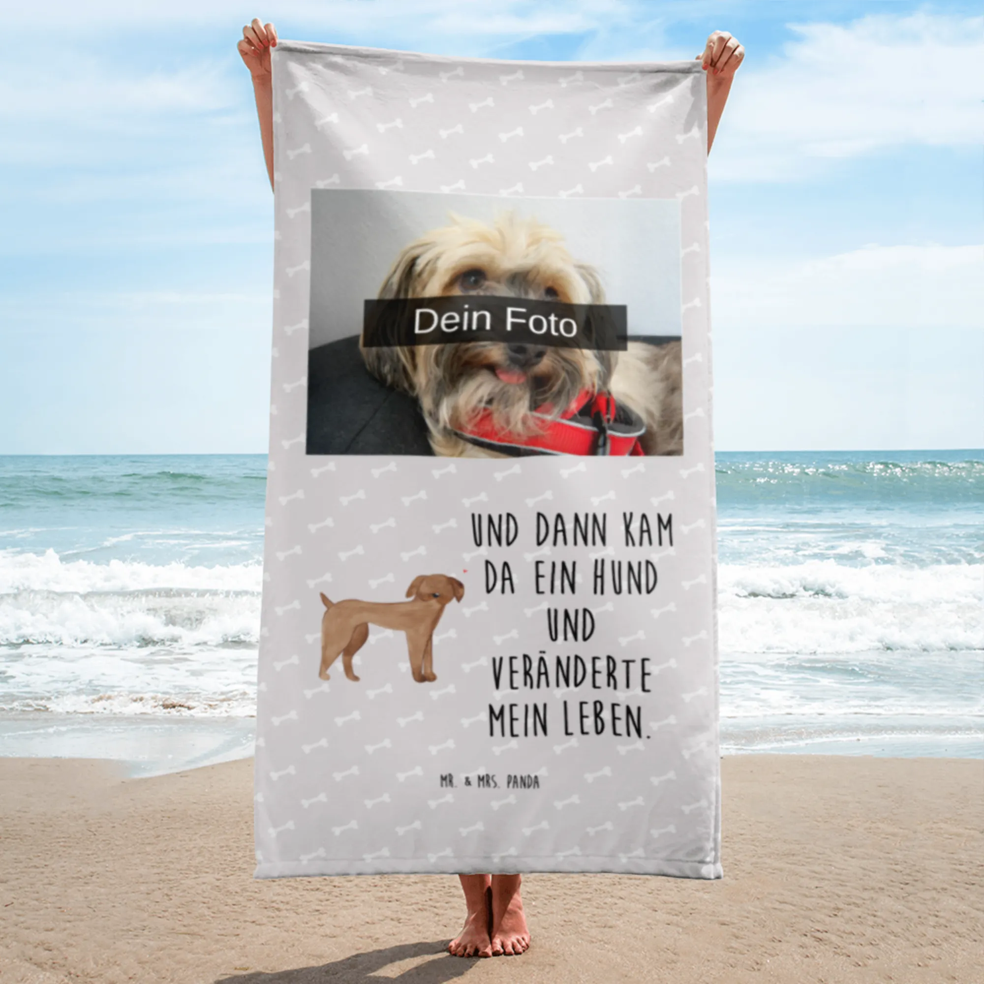 Mit dem Foto XL Handtuch von Mr. & Mrs. Panda wird jeder Tag am Strand oder im Schwimmbad zu einem besonderen Erlebnis! Dieses extra große Handtuch misst 1520 mm x 760 mm und hat eine Dicke von 7 mm. Gefertigt aus hochwertigem Baumwollfrottee, ist es nicht nur super weich, sondern auch ultra saugfähig. Das Handtuch ist mit bunten, fröhlichen Motiven und Sprüchen bedruckt und erlaubt es dir, dein individuelles Foto für eine tolle persönliche Note hinzuzufügen. Achte darauf, dass dein Bild in hohem Auflösung vorliegt – so wird das Druckergebnis optimal. Die wasserabsorbierende Frotteerückseite sorgt dafür, dass du nach einem Sprung ins Wasser schnell abtrocknen kannst. Das Foto XL Handtuch ist pflegeleicht und kann bei 30°C in der Waschmaschine gewaschen werden. Lass dir diese bunte Freude nicht entgehen und genieße die Unbeschwertheit am Wasser mit Mr. & Mrs. Panda!