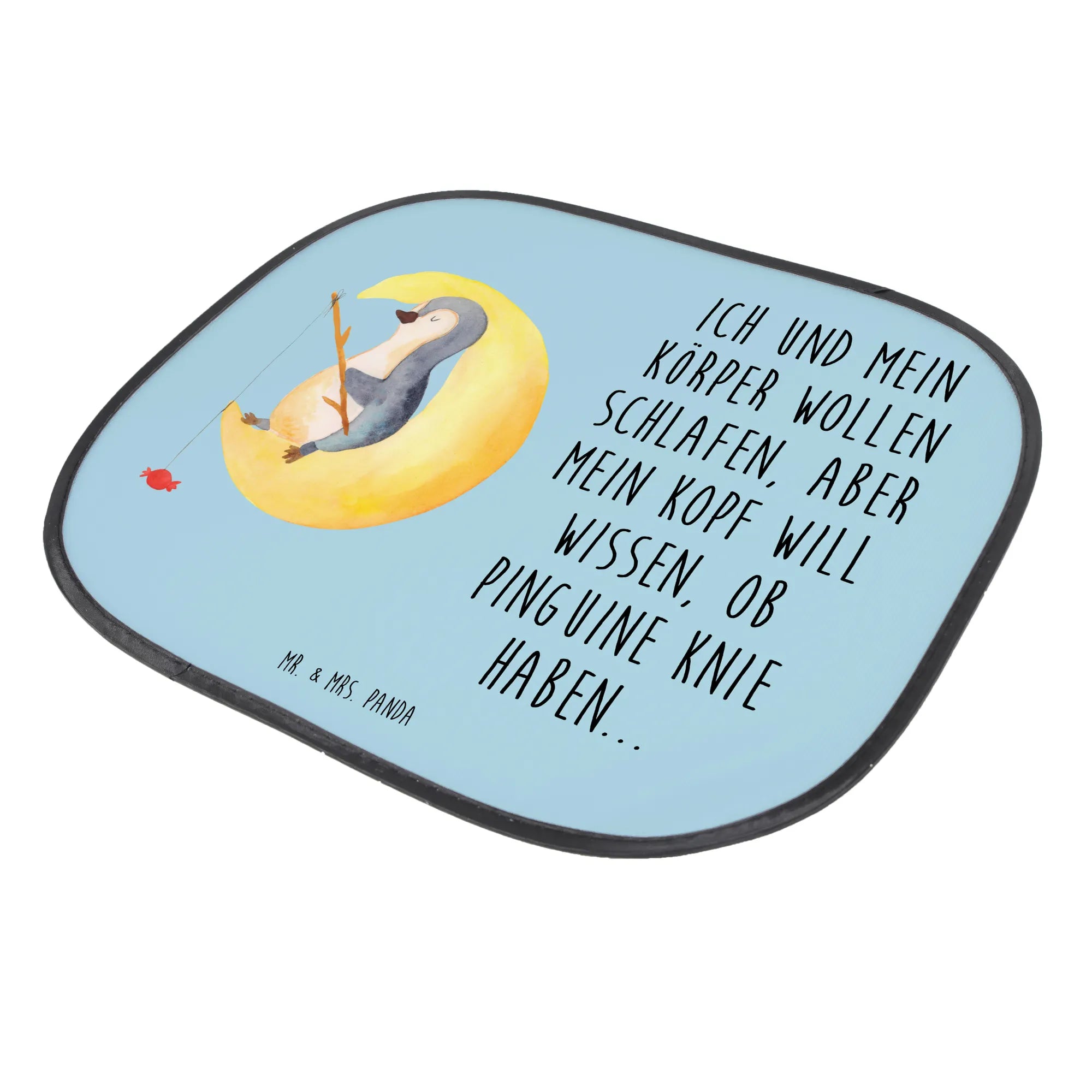 Introducing the delightful Car Sun Shade from the Penguin Collection, designed for families and anyone who loves a little whimsy while on the road! This charming accessory not only provides essential sun protection but also brings joy to car rides, especially for children. Adorned with an adorable motif featuring a cozy penguin lounging on a crescent moon, this sun shade is the perfect combination of functionality and fun. With the slogan, "My body just wants to sleep… while my brain simply has to obsess over whether penguins have knees," it’s sure to entertain both young and old, sparking smiles and laughter during every journey.