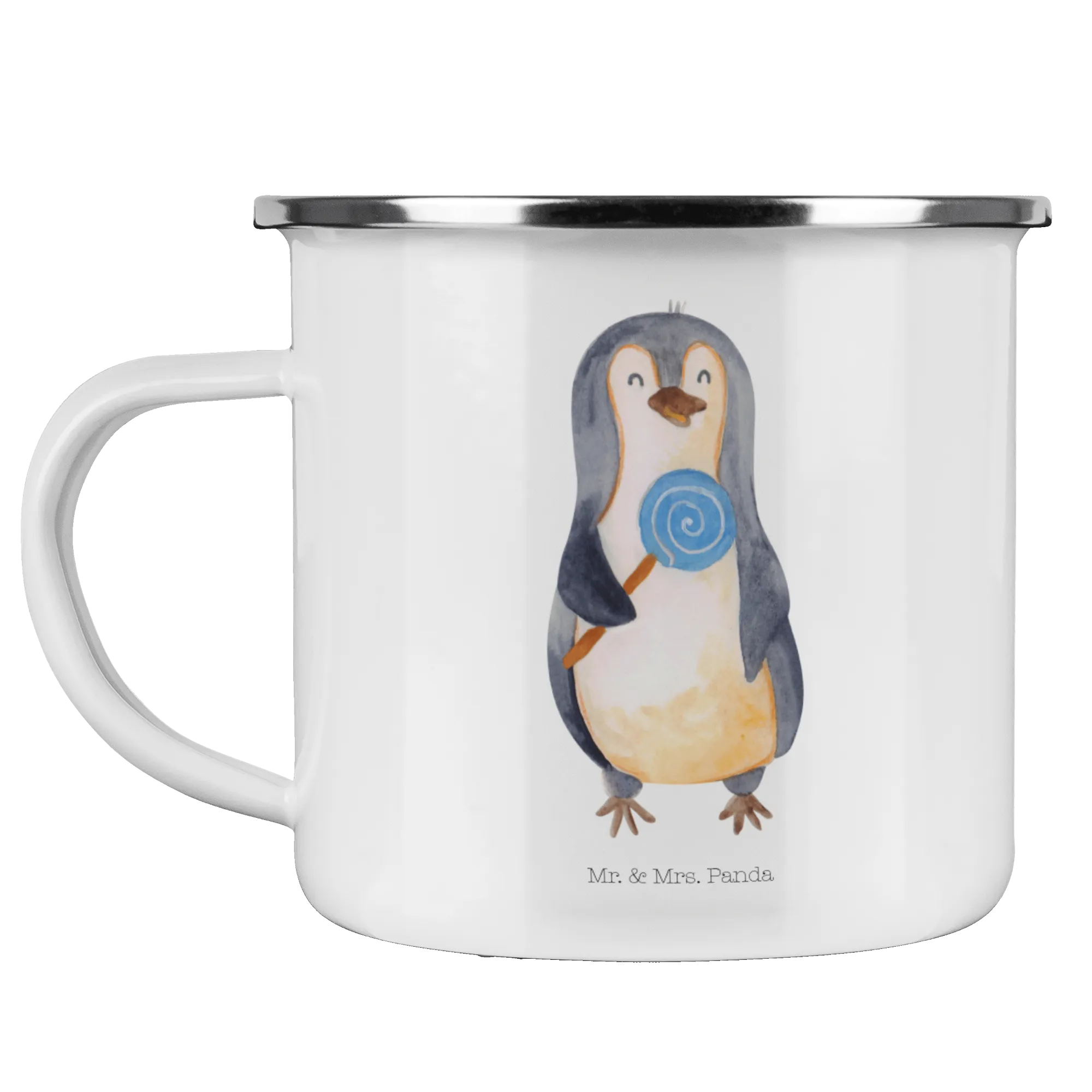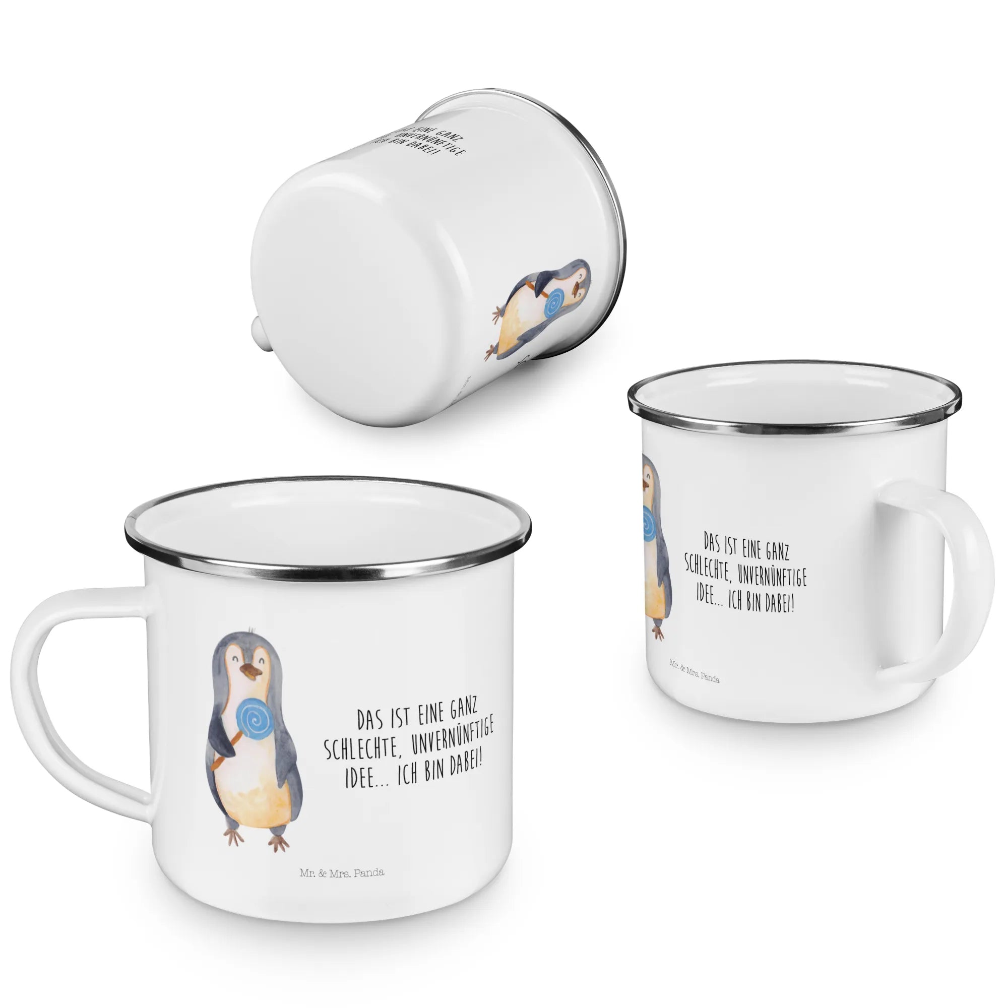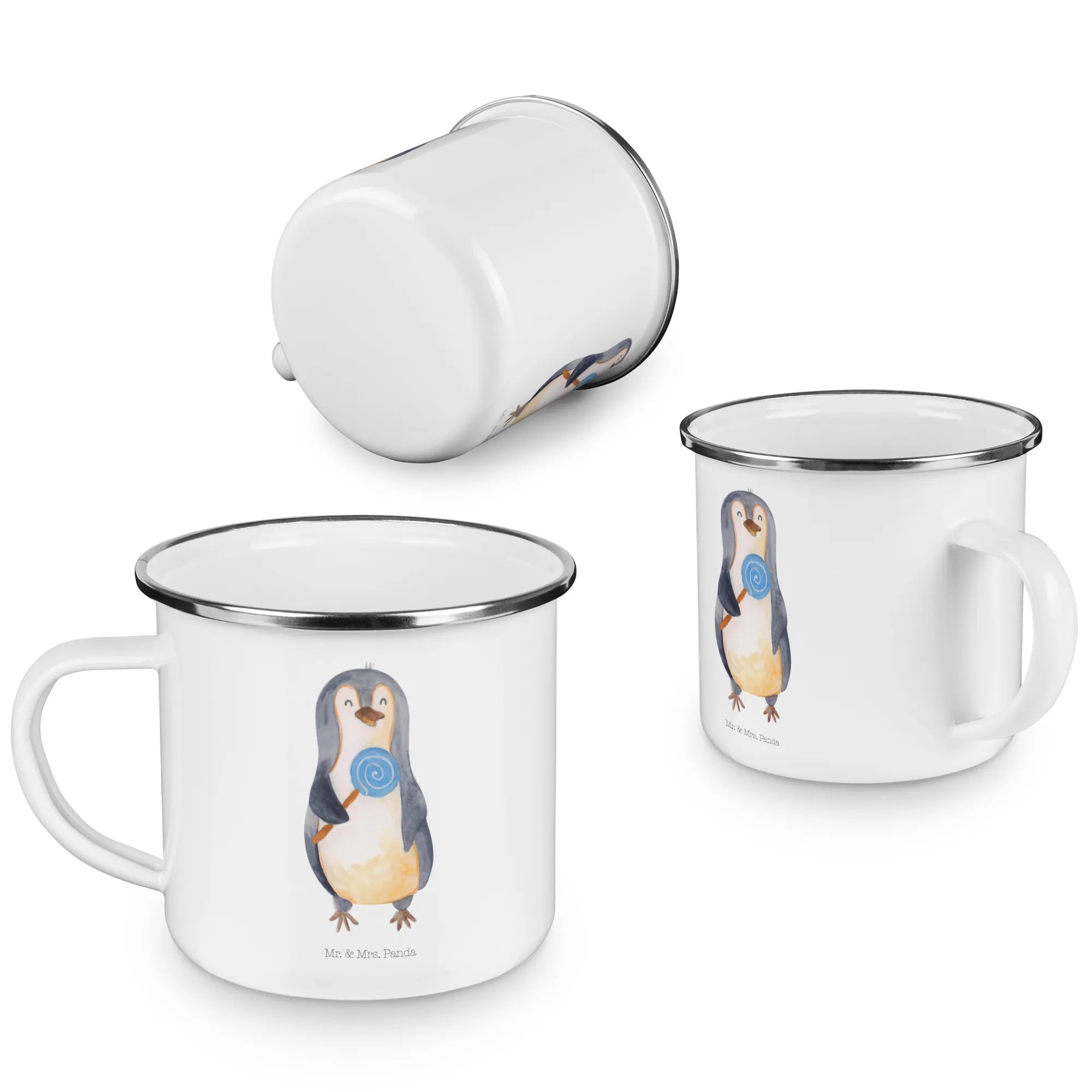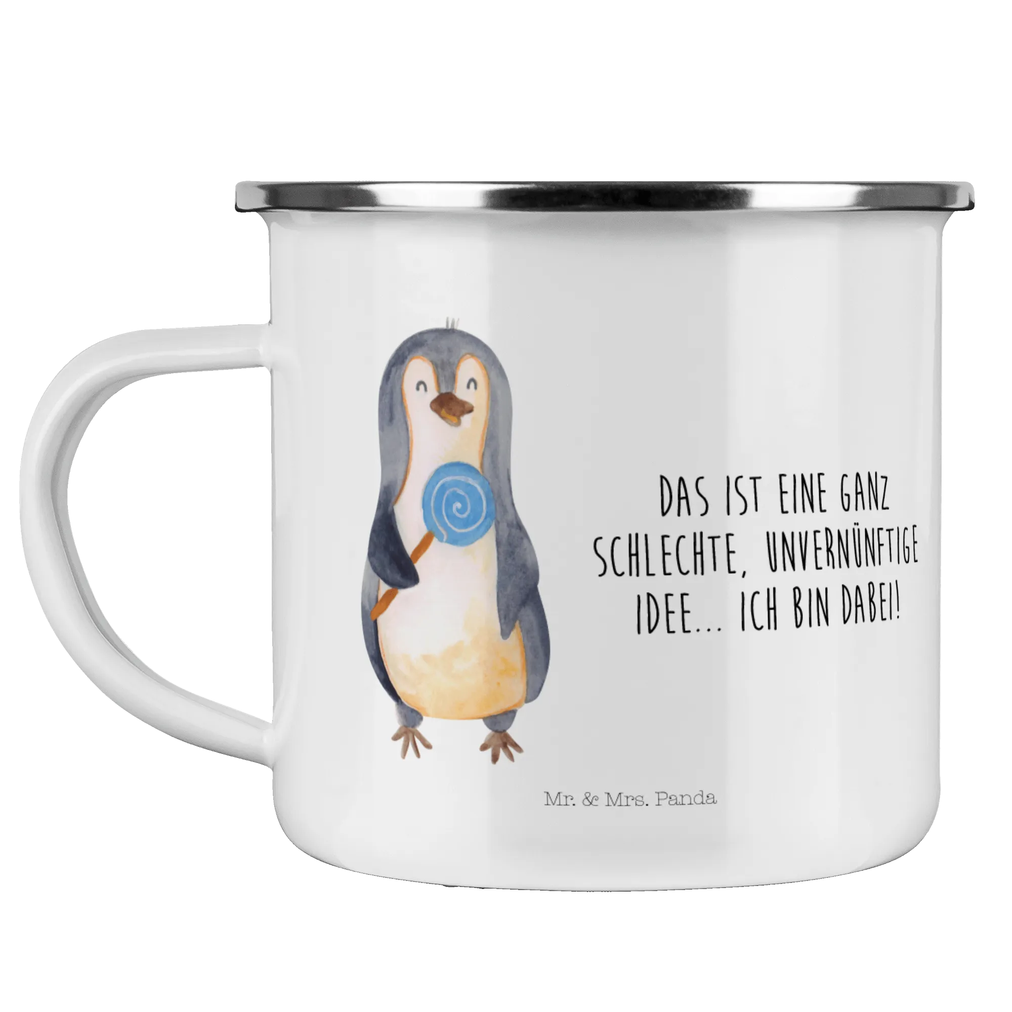 Enamel camping mug Penguin lollipop - mit Spruch - White