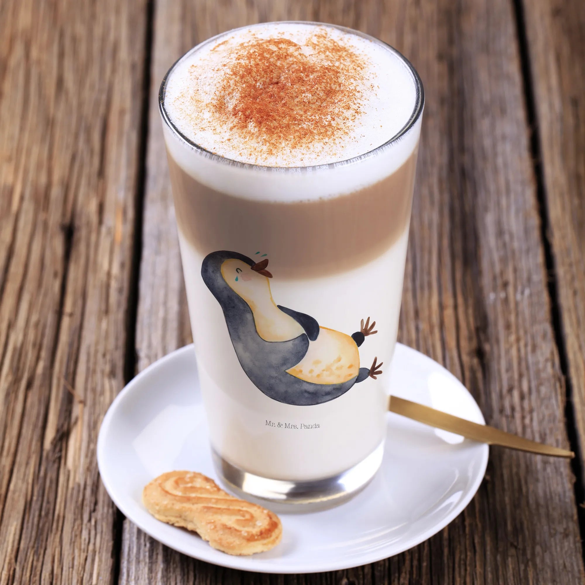 Searching for the perfect gift that brings joy and adds sparkle to someone's day? Look no further than this delightful Cappuccino Glass featuring a laughing penguin from the beloved Penguin Collection by Mr. & Mrs. Panda!