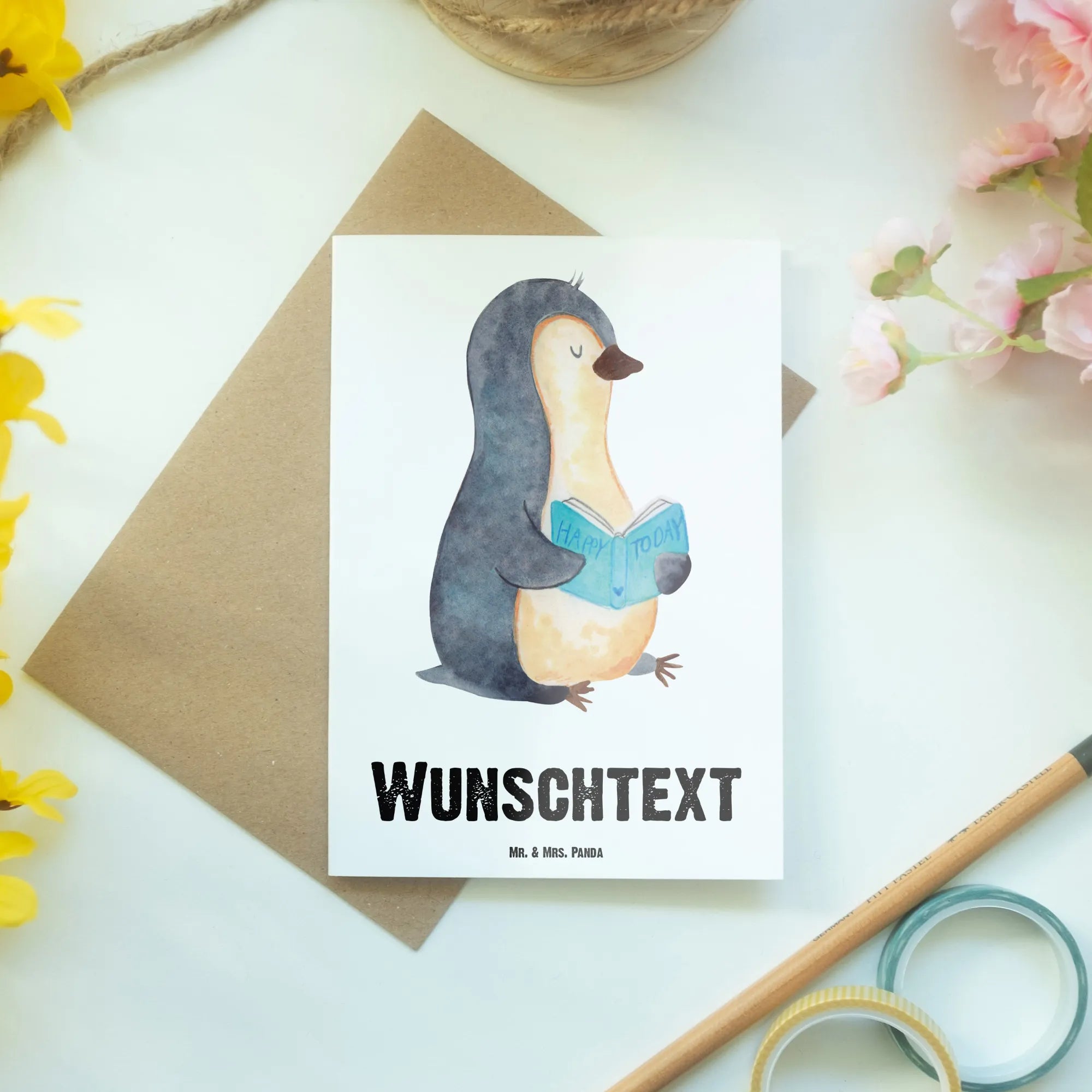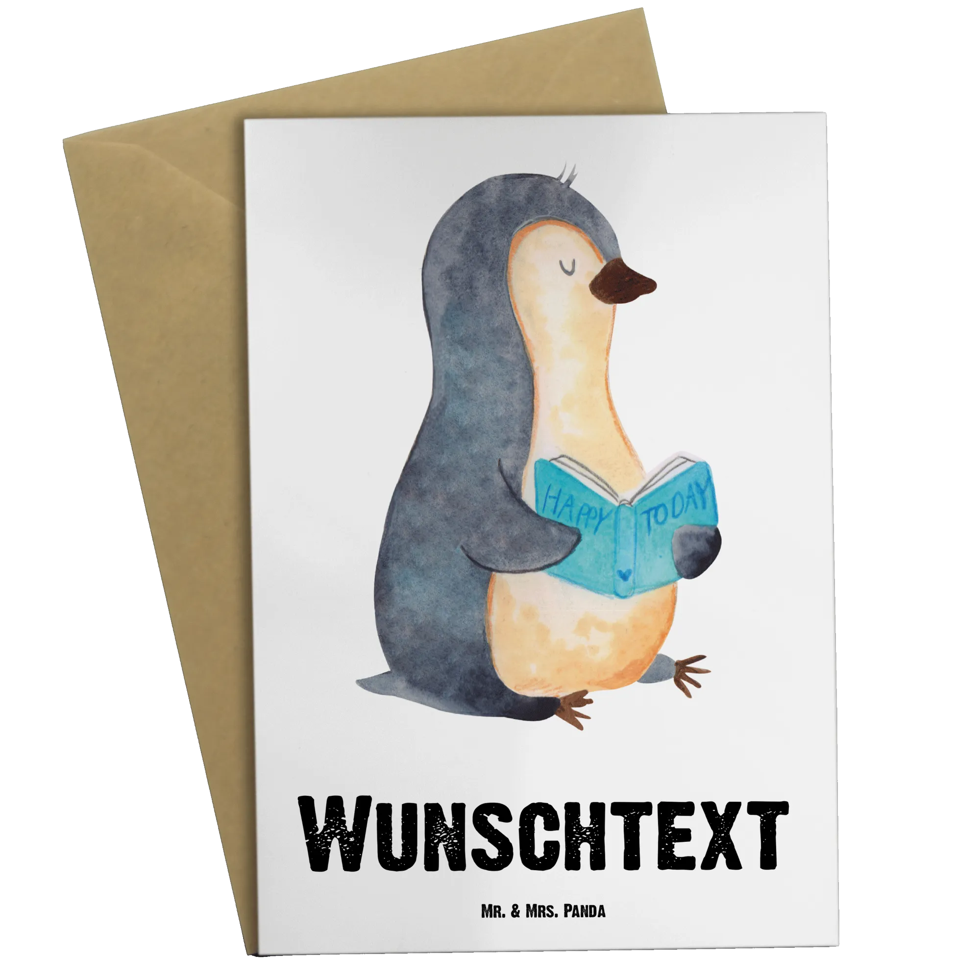 Personalised greetings card Penguin A book