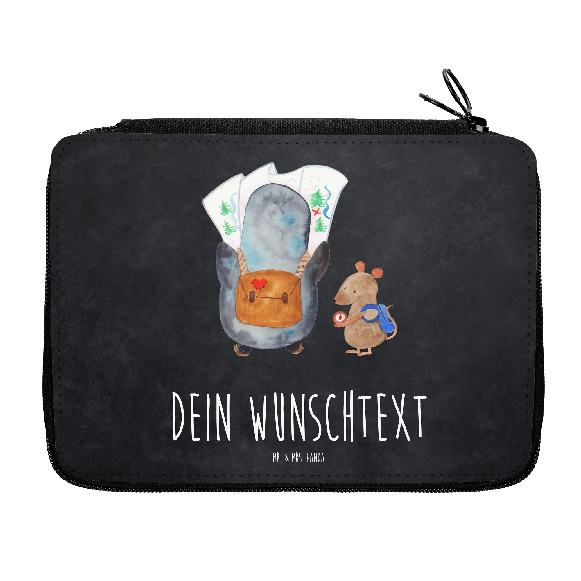 Personalised leather folder Penguin & Mouse Hiker - Chalkboard