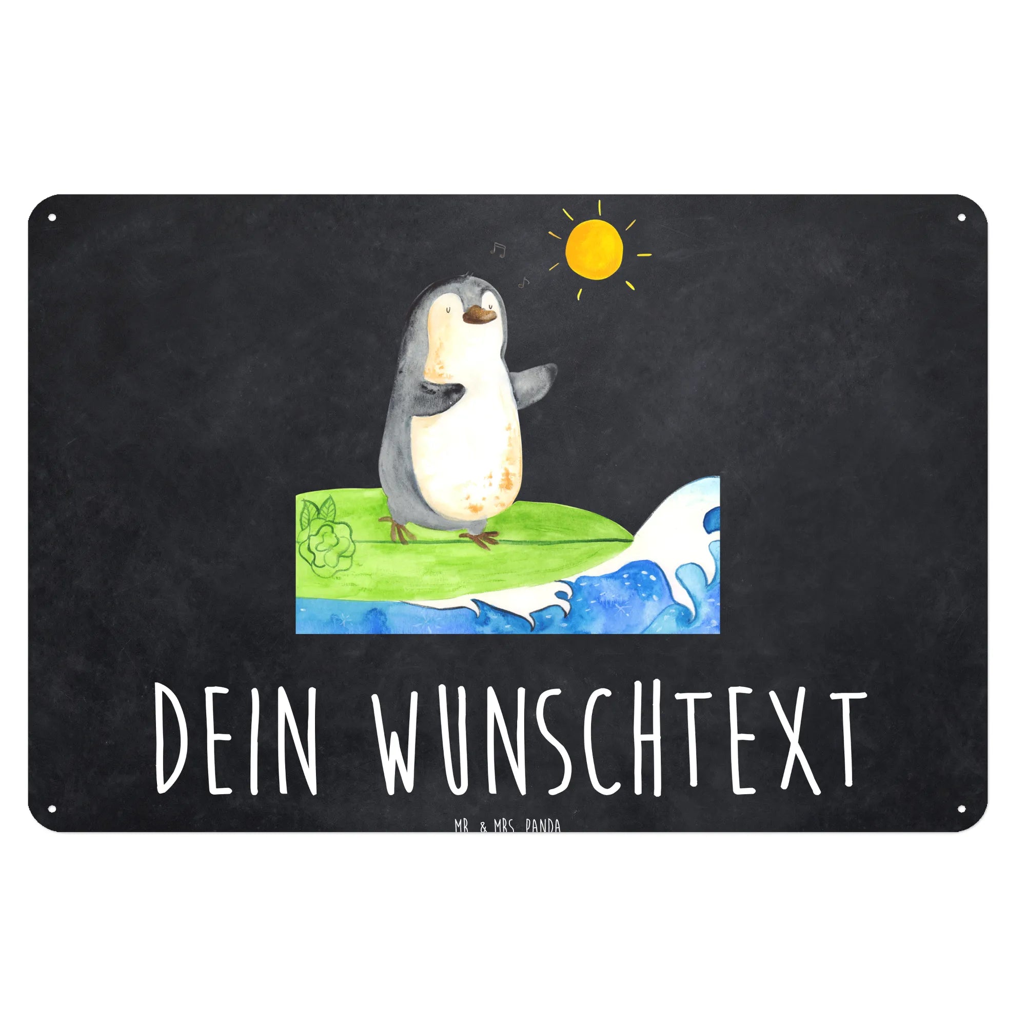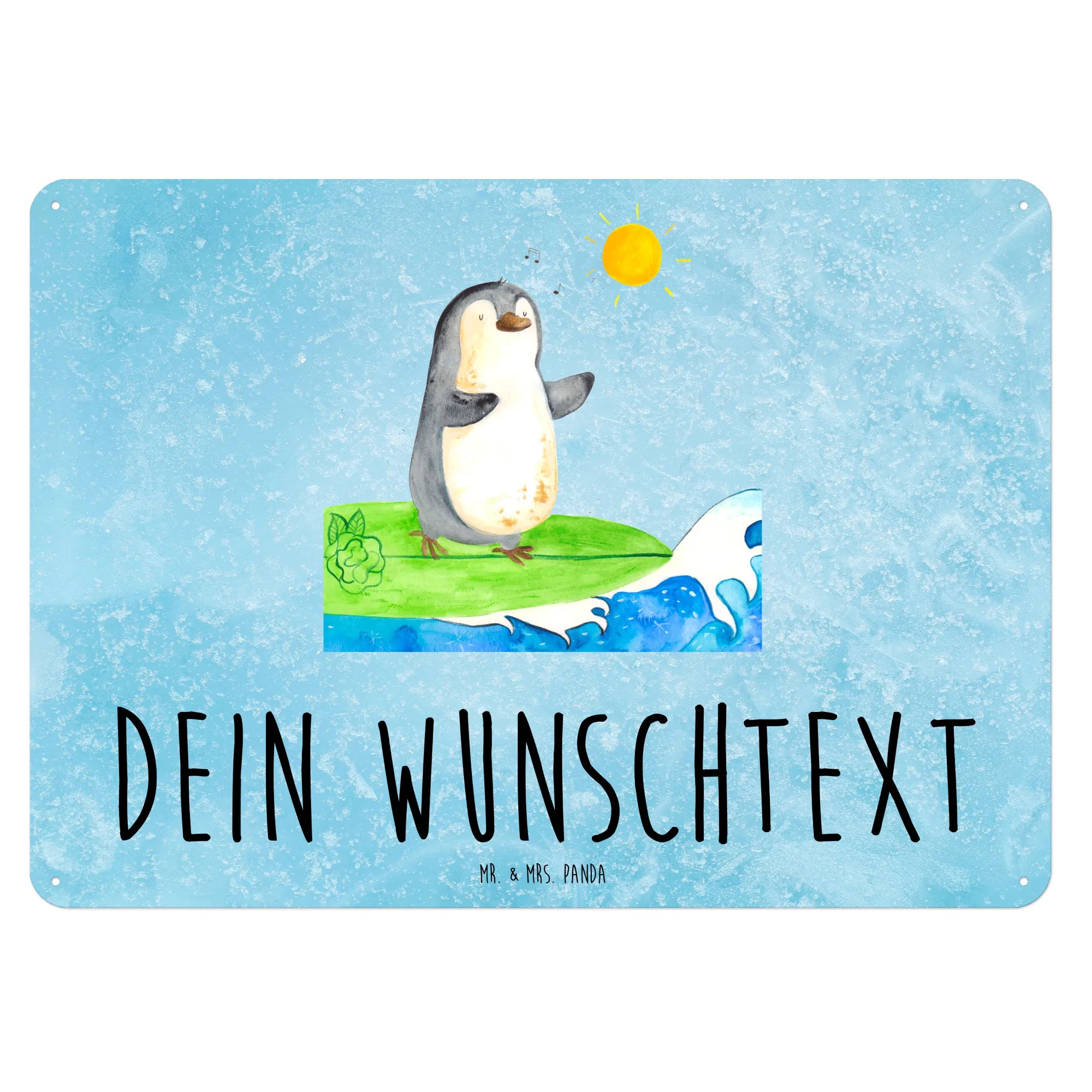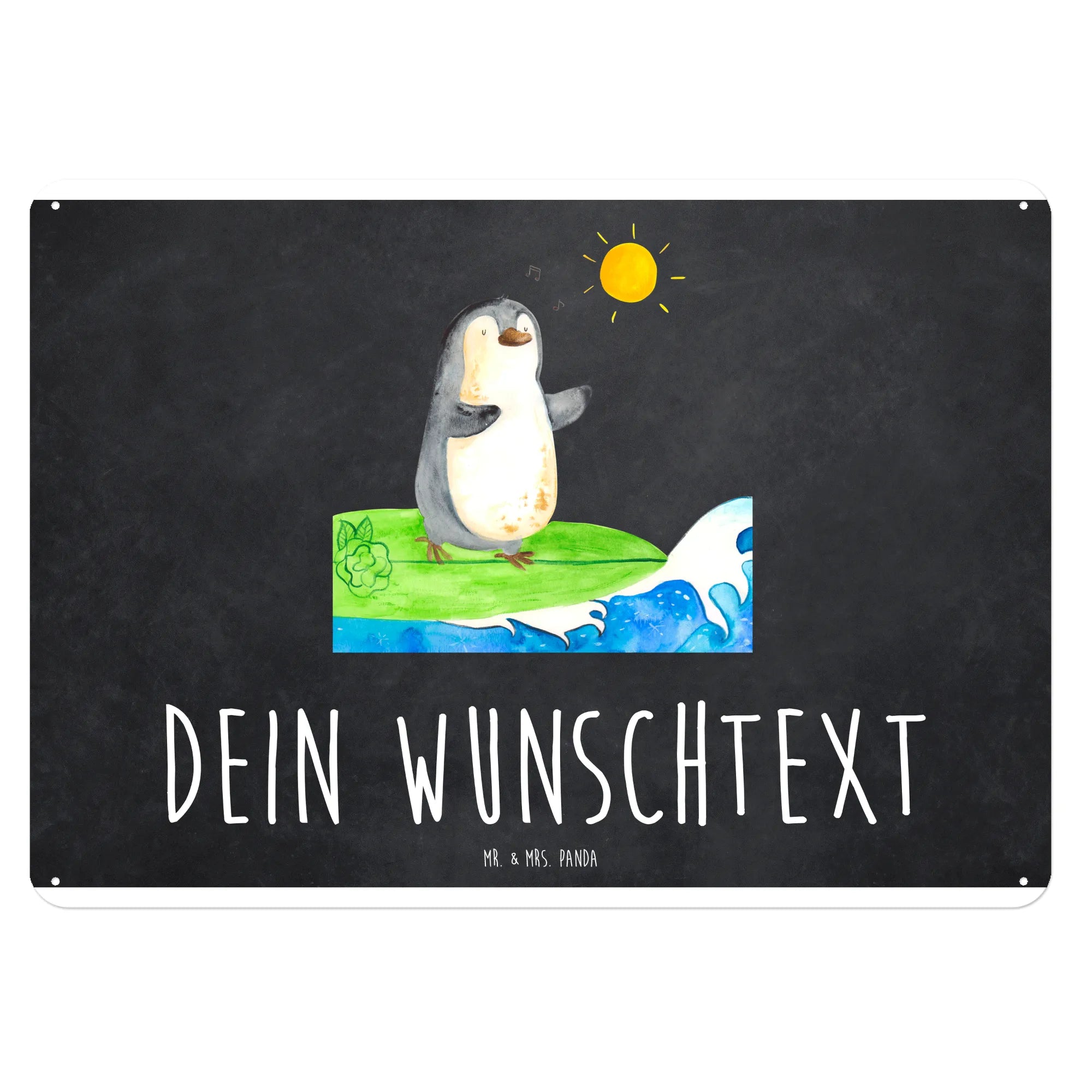 Entdecke das personalisierte Blechschild mit dem fabelhaften Pinguin Surfer von Mr. & Mrs. Panda! 🐧