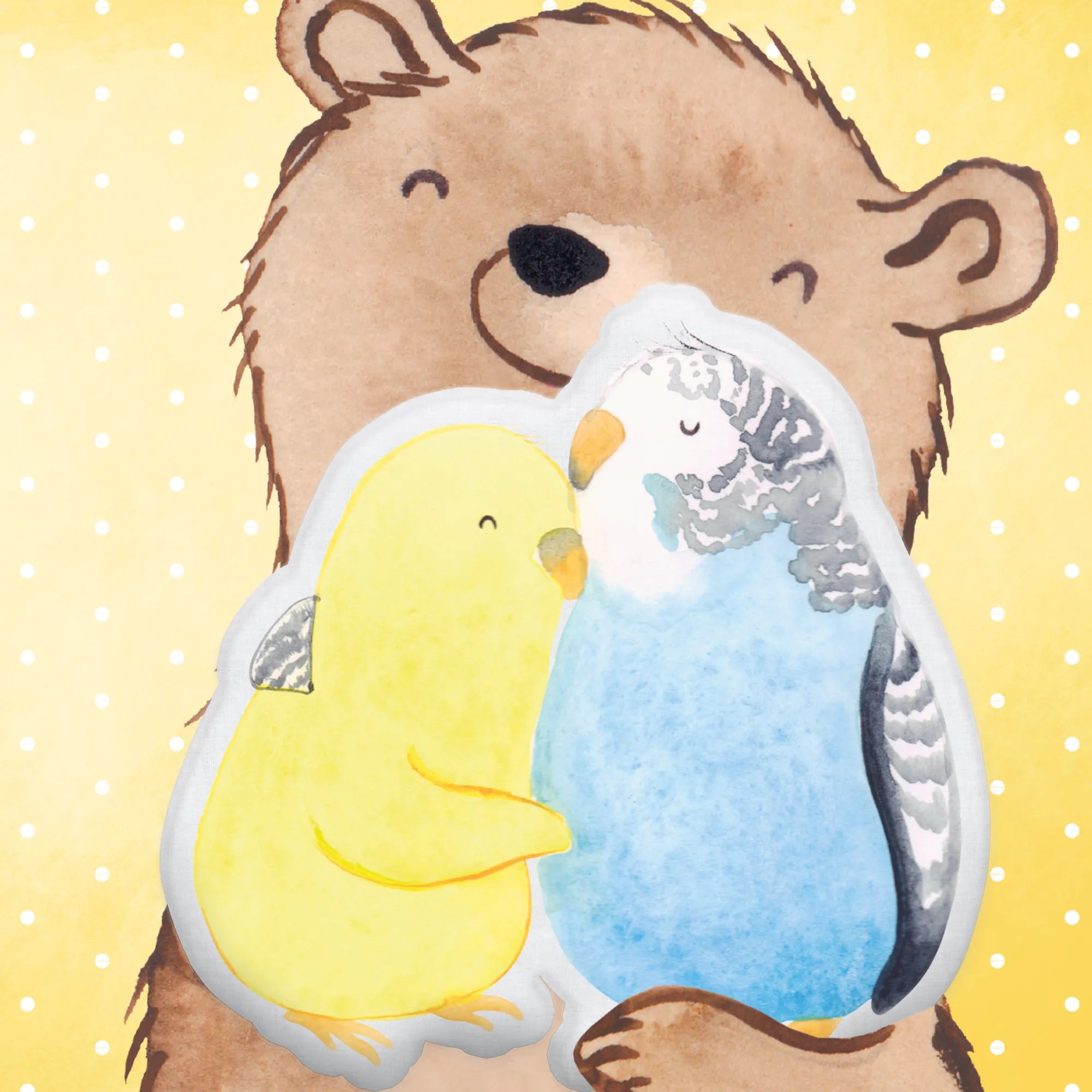 Looking for the perfect gift to express your love? Our Mr. & Mrs. Panda Animal Pillow featuring adorable parakeets in love is just what you need! This charming cushion showcases a delightful image of two lovebirds nestled together, radiating warmth and affection. With soft pastel watercolor hues, the parakeets, one in a vibrant yellow and the other beautifully shaded in blue and gray, perfectly capture the essence of love, trust, and closeness.