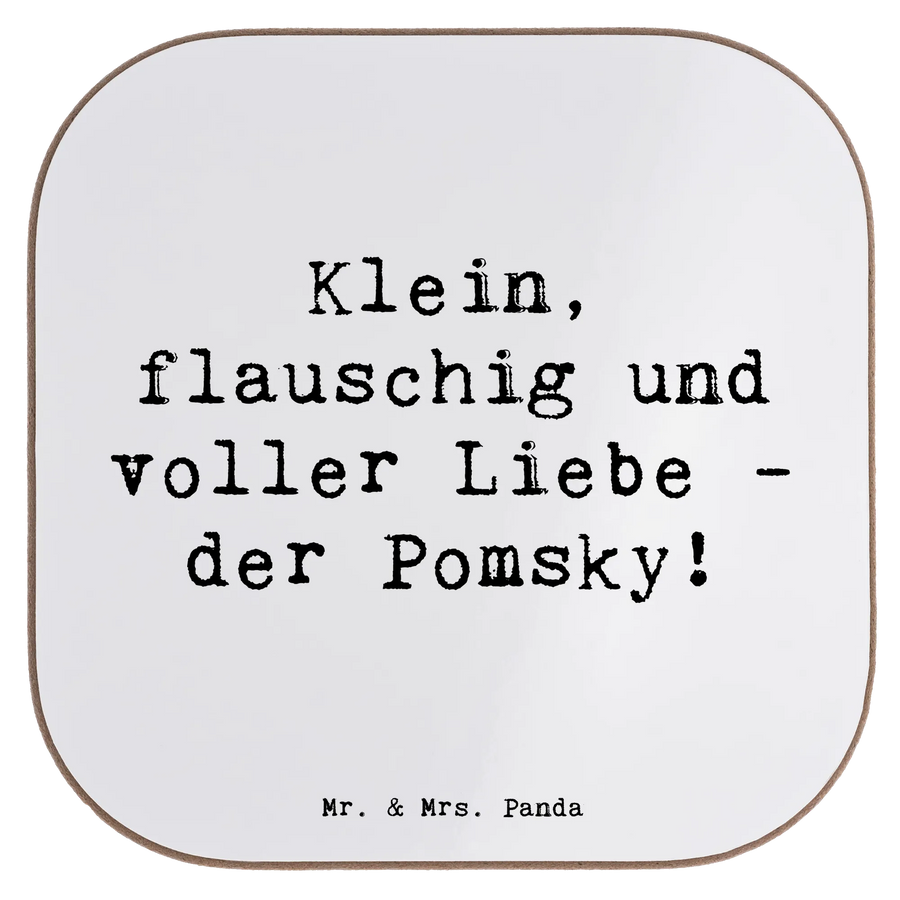 Square coaster Saying Klein, flauschig und voller Liebe - der Pomsky! - White