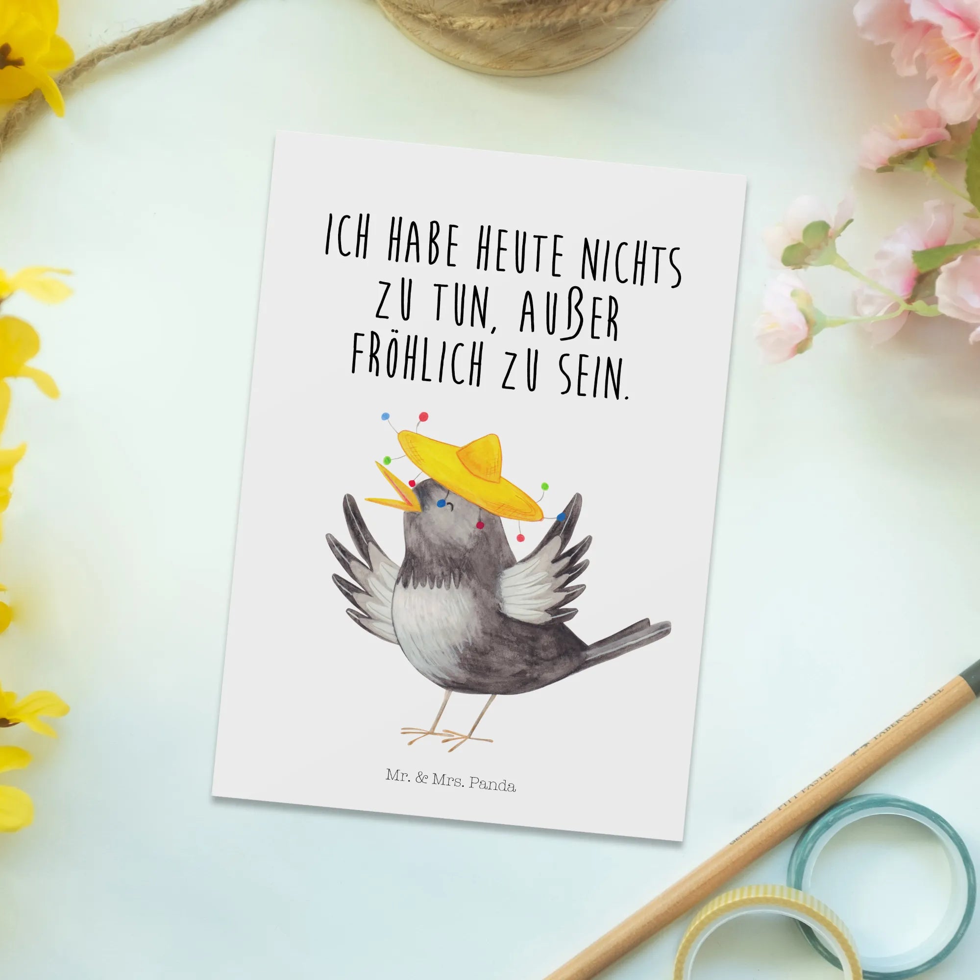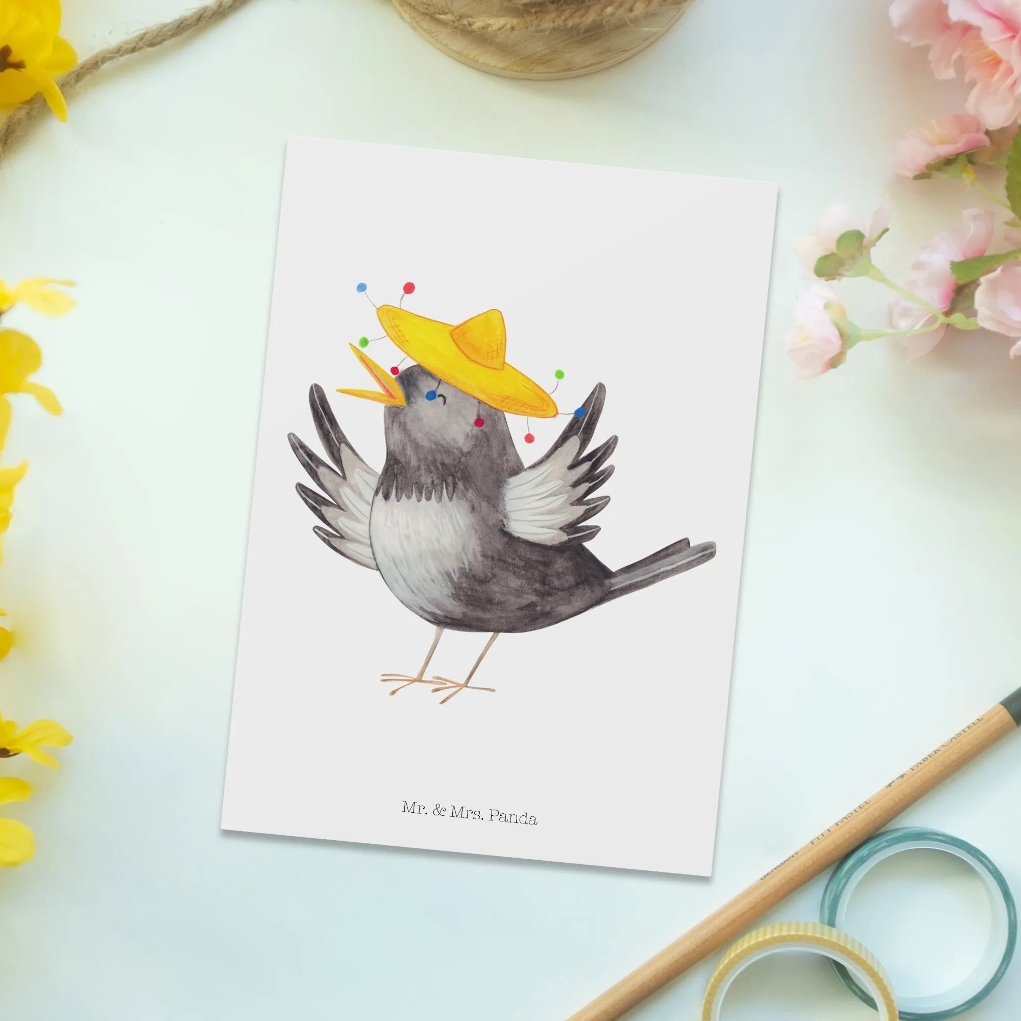 Imagine brightening a friend's day or sending a sweet surprise to a loved one. Whether it's a birthday celebration, a wedding announcement, or just a thoughtful gesture to show you care, this unique postcard is versatile enough for all events. The crow with a sombrero is not just funny, but it also carries an uplifting charm that spreads good vibes. Known for the playful spirit and lovable illustrations, Mr. & Mrs. Panda have created a line of products that are adored by animal lovers and happiness enthusiasts alike.
