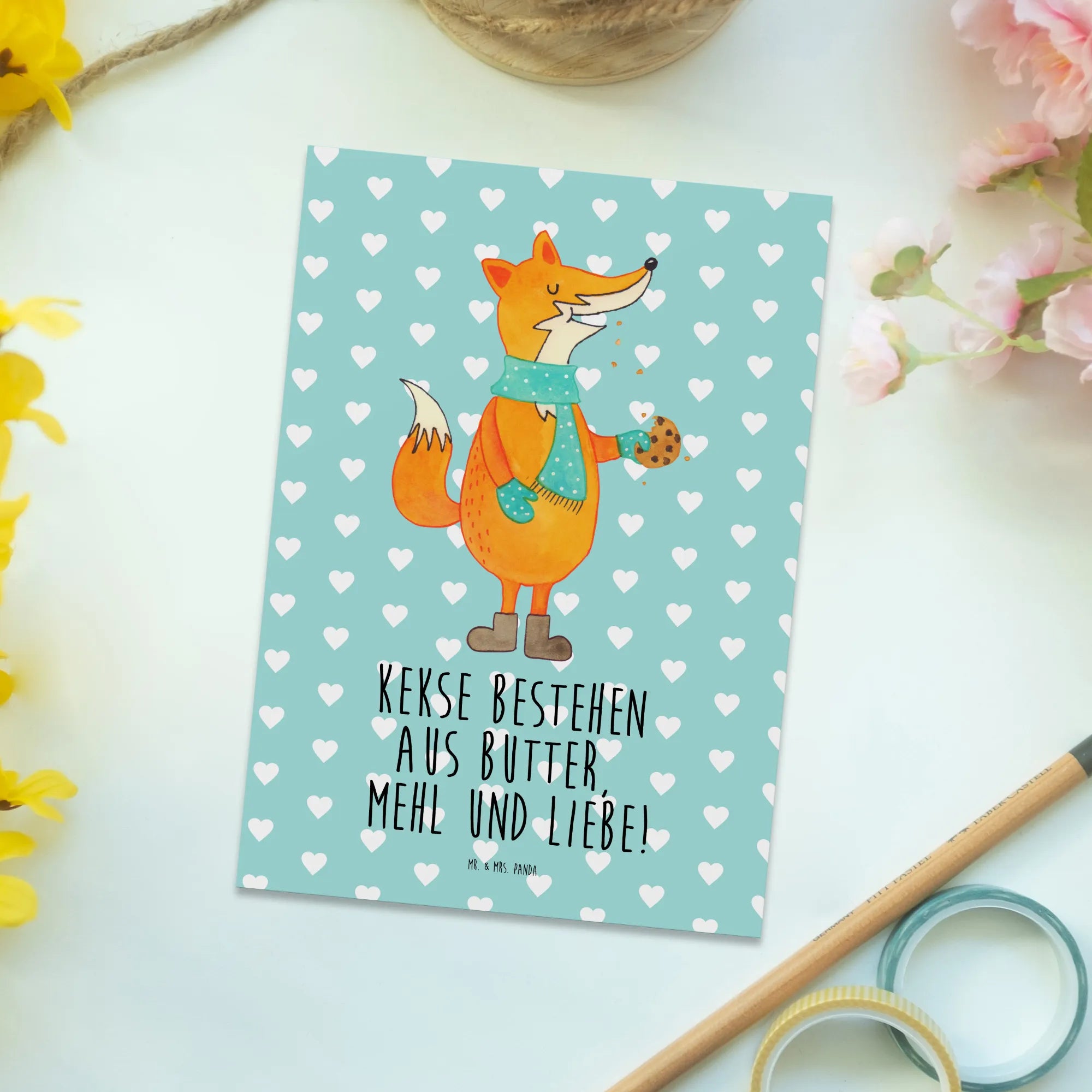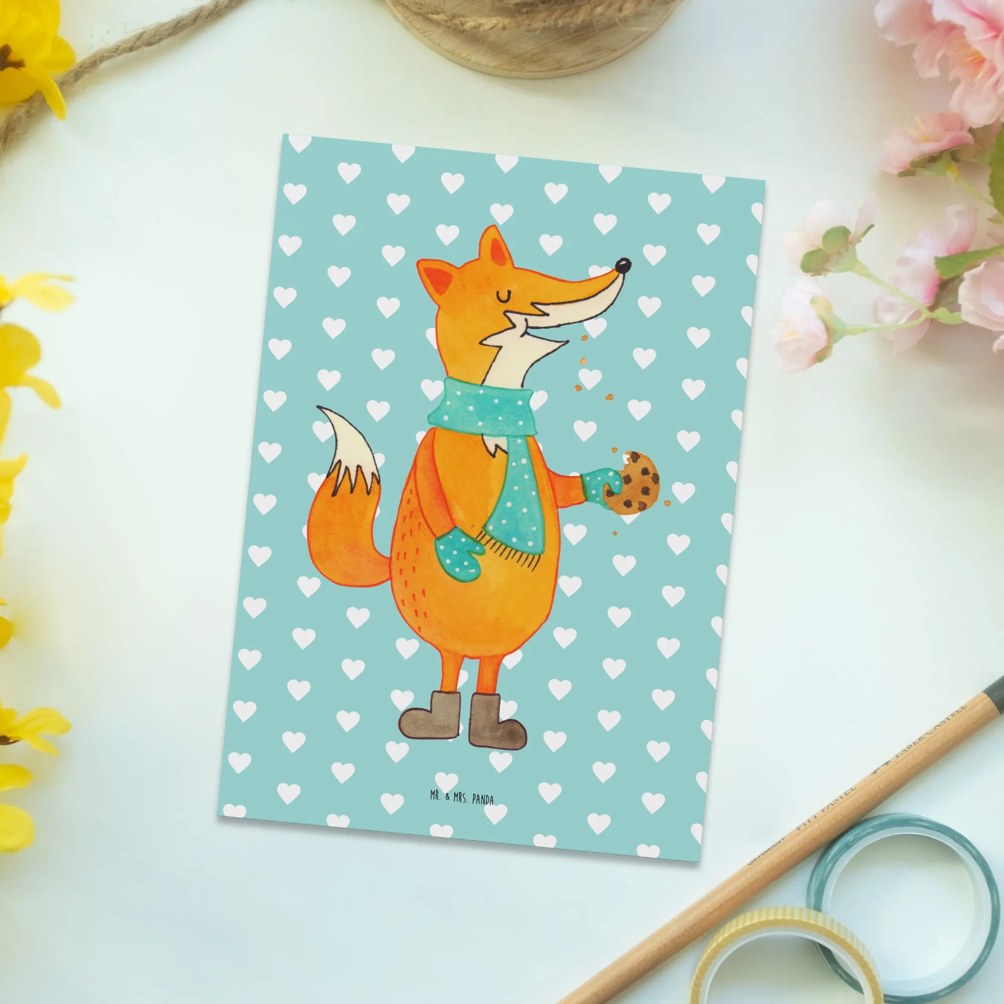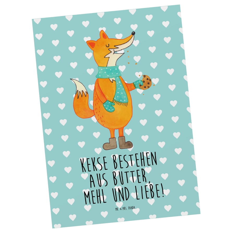 Postcard Fox biscuit - with a saying - Turquoise Pastel