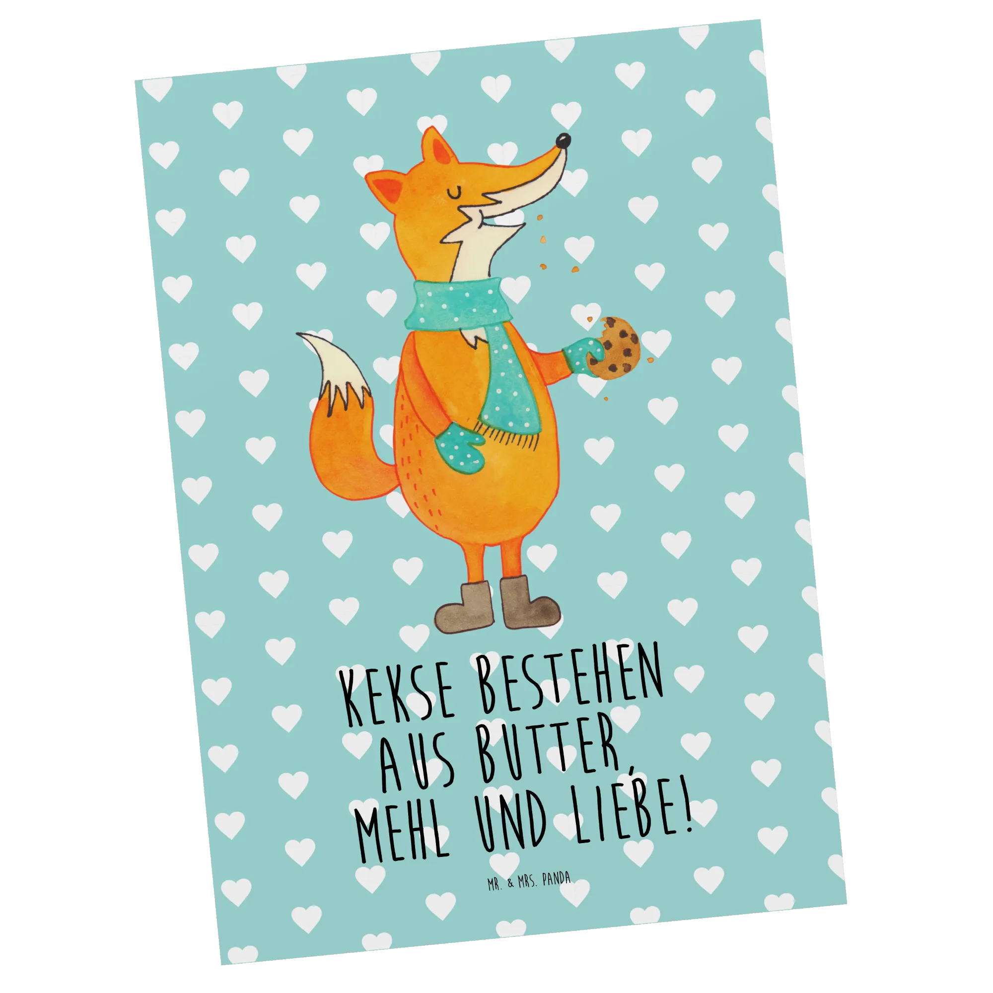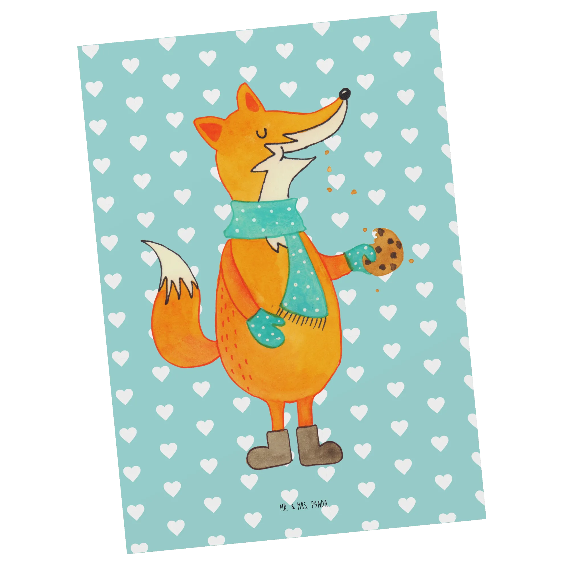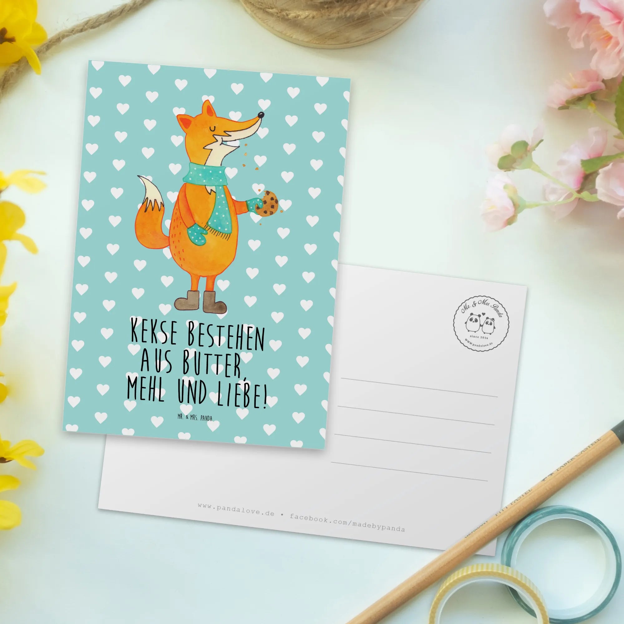Postcard Fox biscuit - with a saying - Turquoise Pastel