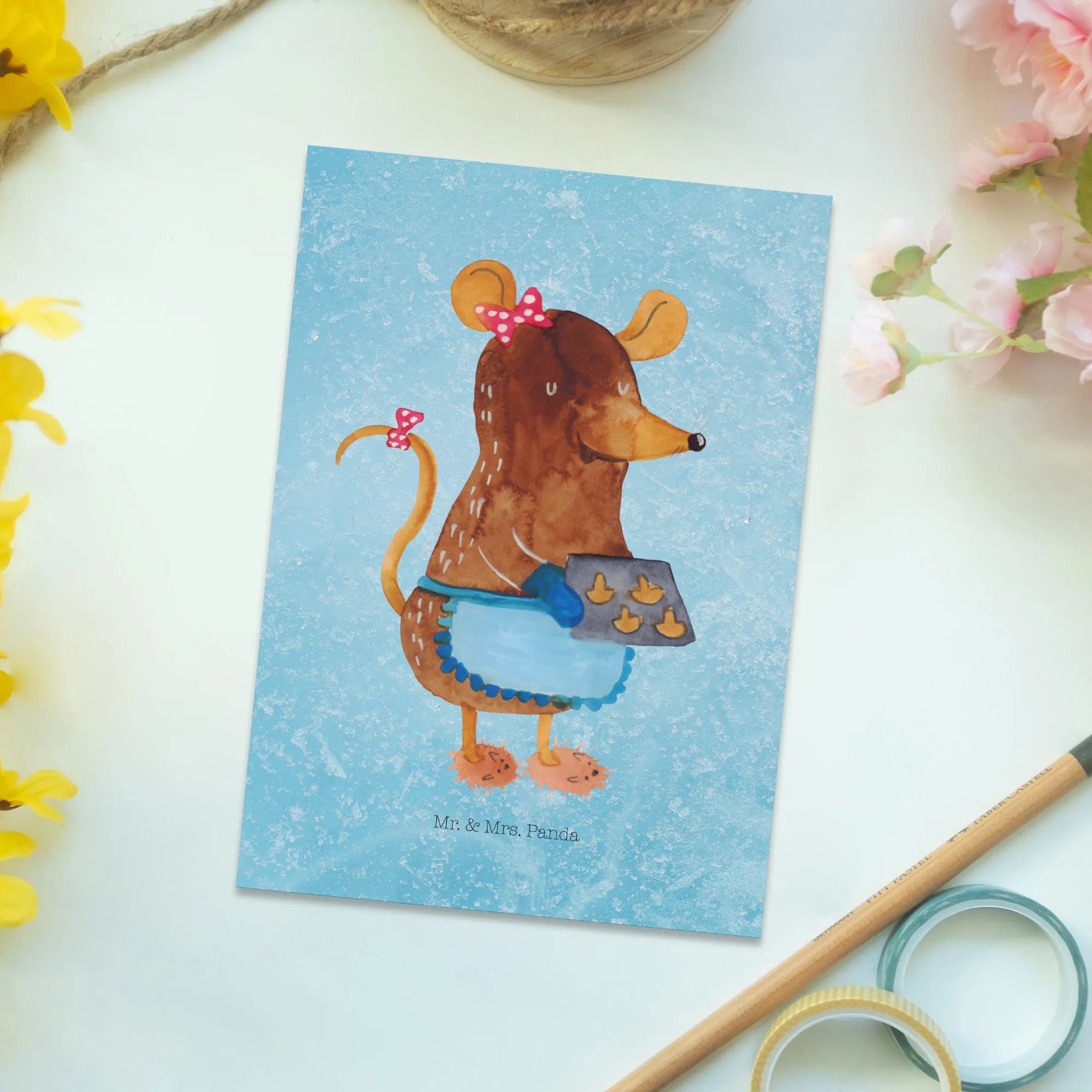 The Winter Collection from Mr. & Mrs. Panda is celebrated for its hand-drawn whimsical motifs and clever sayings. This particular design brings forth an enchanting imagery of our tiny mouse engaged in the delightful art of baking – a visual that perfectly resonates with families and friends who bond over holiday baking traditions. Whether you are sending it as an invitation card to a holiday cookie party or as a gift card accompanied by festive treats, this postcard is ideal for capturing the warmth and joy that the season embodies.