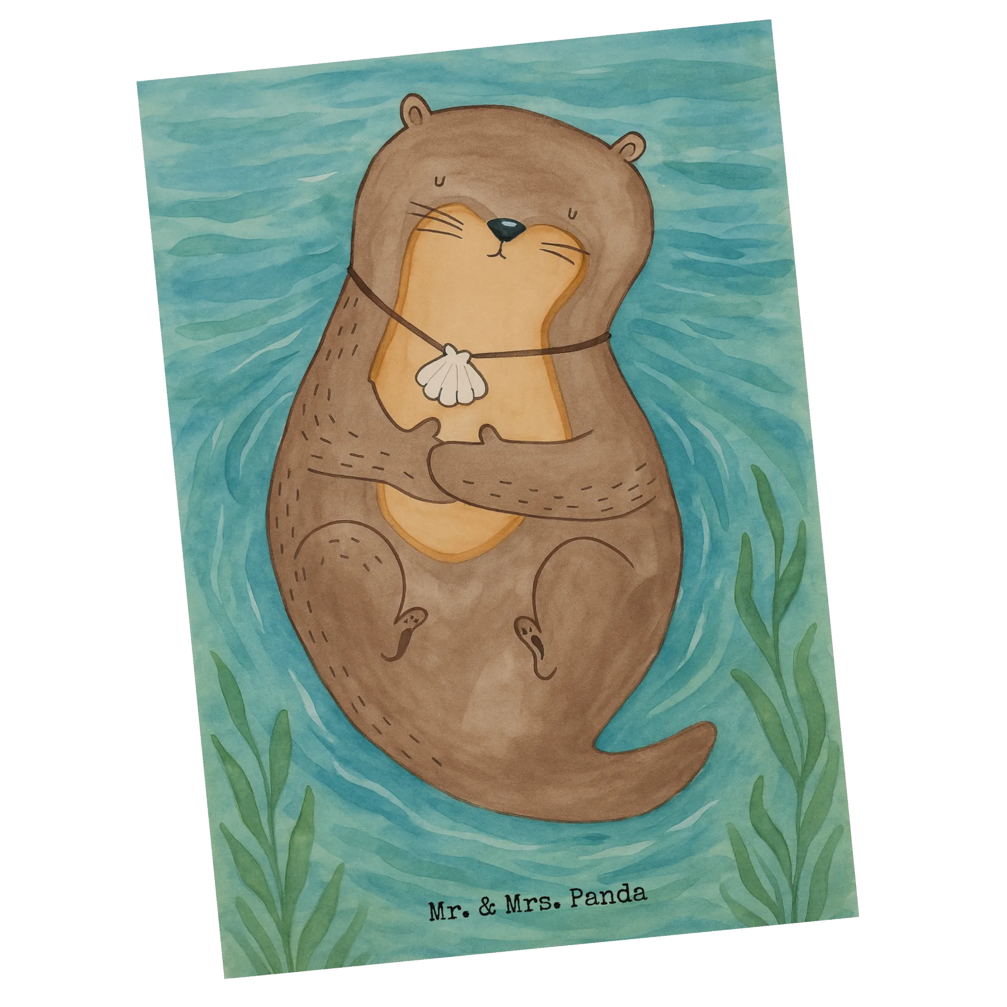 Otter mit Muschelmedaillon – die zauberhafte Postkarte aus der Otter - Kollektion von Mr. & Mrs. Panda bringt Meeresstimmung direkt in deine Hände. Das handgezeichnete Aquarellmotiv zeigt einen niedlichen Otter mit einer Muschel als Medaillon und strahlt Ruhe, Leichtigkeit und eine Portion Charme aus. Perfekt für alle, die Otterliebe, Seeotter und maritimes Design lieben. 🐾🌊