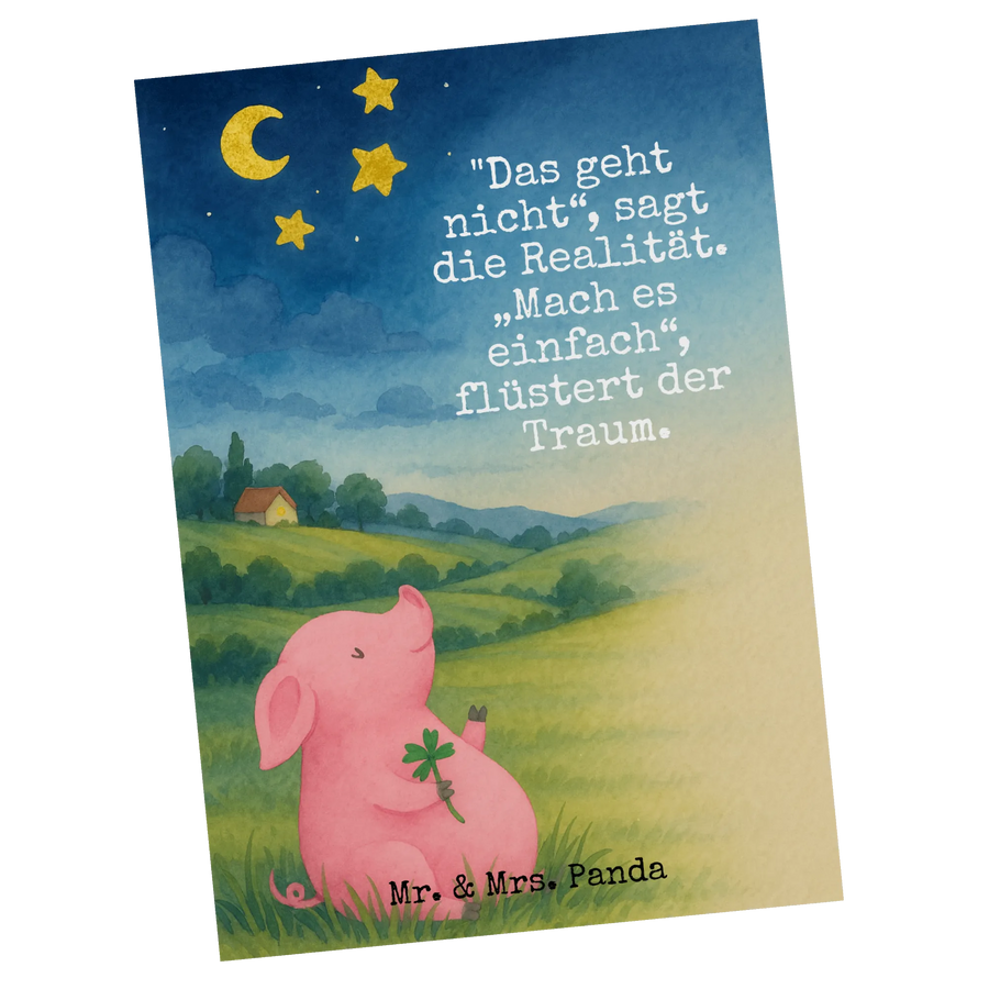 Die Postkarte ist ideal für alle, die Tiermotive, lustige Sprüche und gute Laune lieben. Sie ist ein kleines Geschenk mit großer Wirkung – ein Glücksbringer, der Mut macht und zeigt: Träume sind zum Anfassen da. Verschenke ein Stück Small World und zaubere jemandem ein Lächeln ins Gesicht! 🐷🍀💫