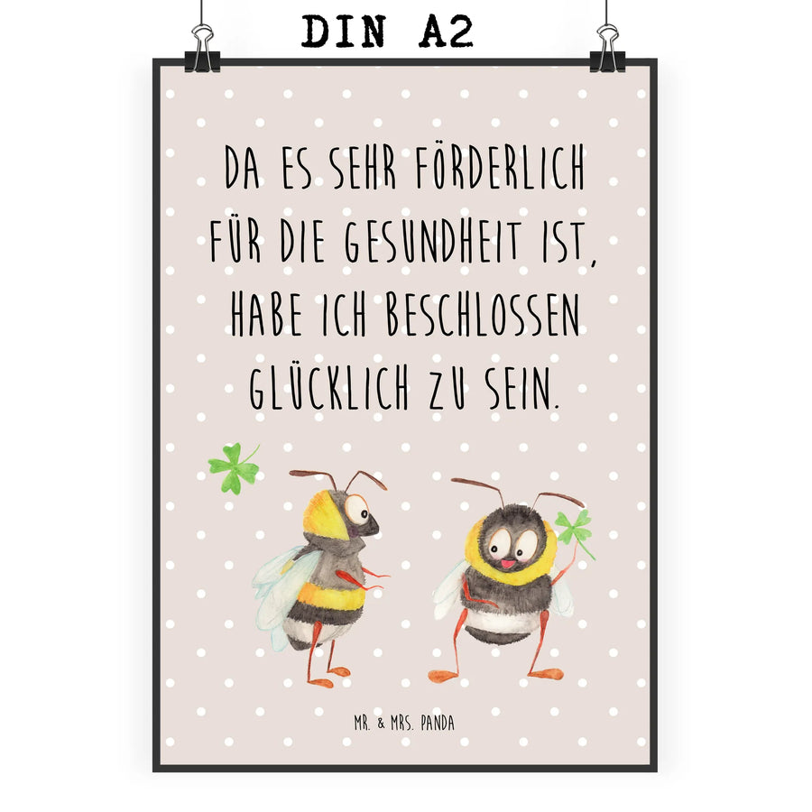 Poster bumblebees shamrock - DIN A2 - with saying - Beige Pastel