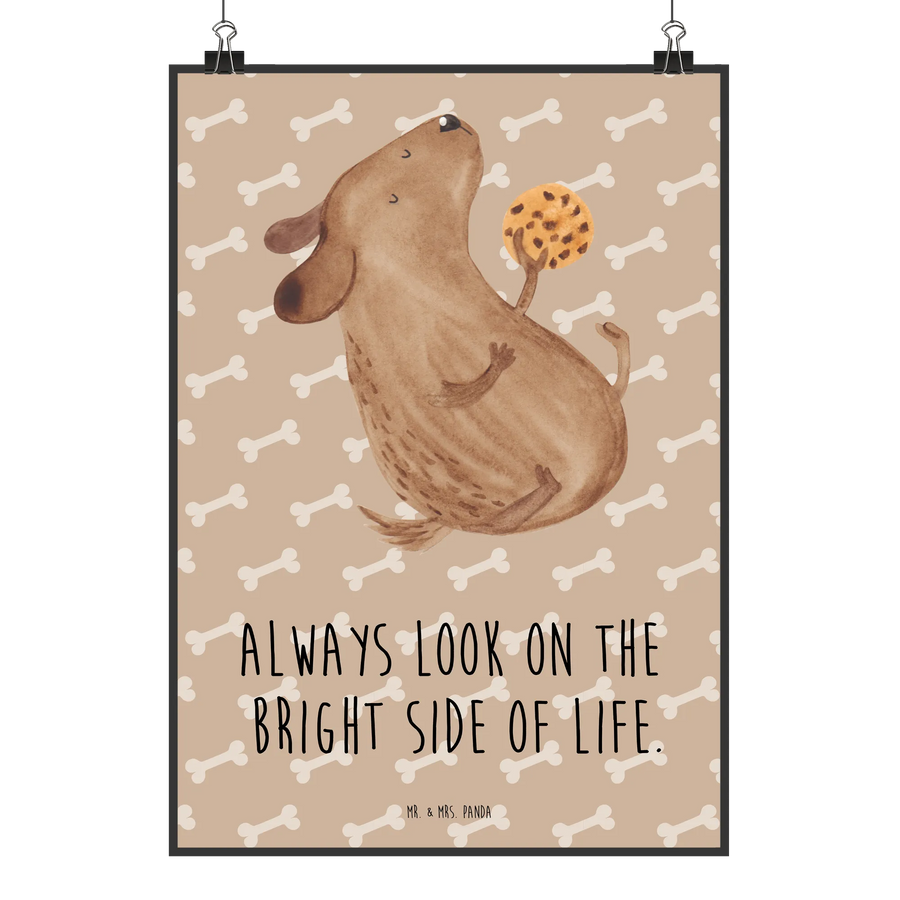 Dieses bezaubernde Kunstdruck-Poster zeigt einen entzückenden Hund, der genüsslich einen Keks verspeist, begleitet vom optimistischen Spruch „Always look on the bright side of life.“ Ein liebevolles Motiv aus der Hunde Kollektion, handgezeichnet von Mrs. Panda, das jedem Raum sofort Wärme und gute Laune verleiht.