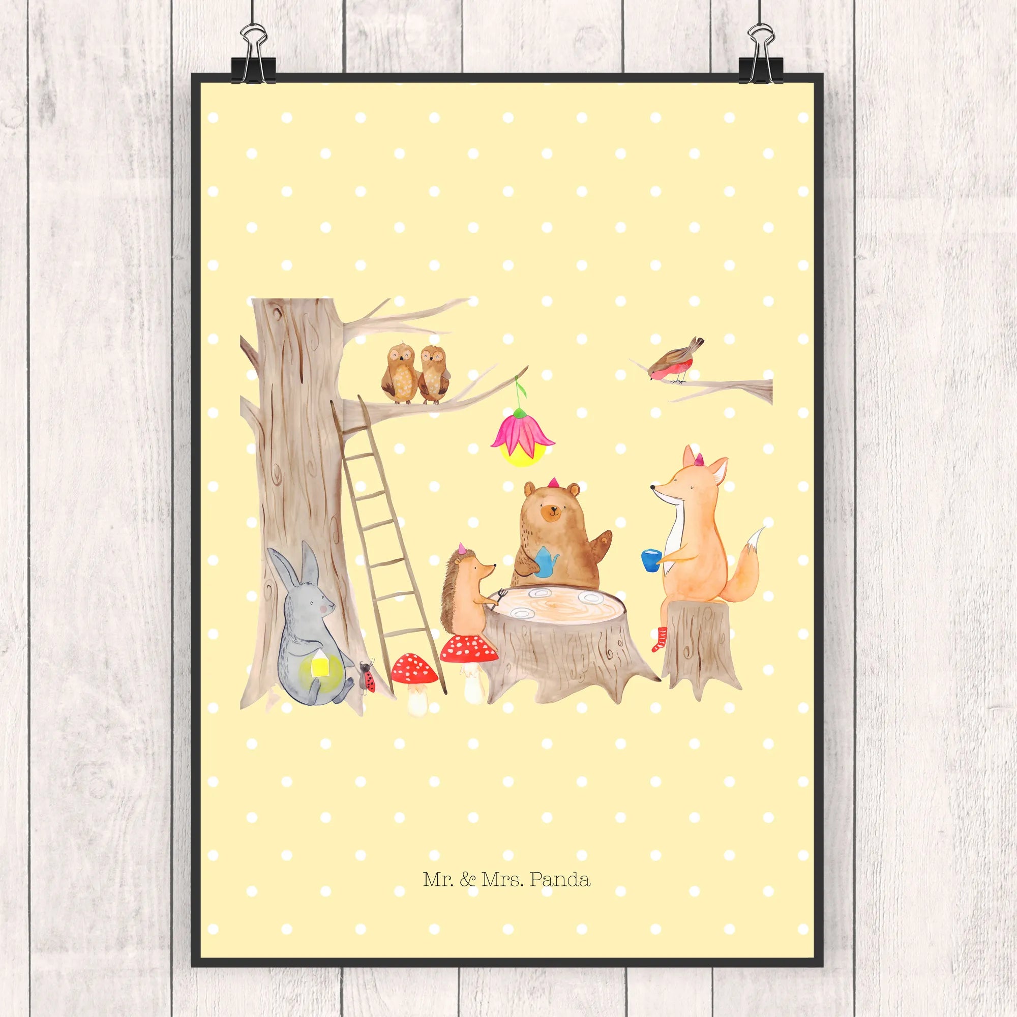 Introducing the enchanting Mr. & Mrs. Panda poster featuring a delightful picnic scene with adorable forest animals! This stunning art piece is perfect for anyone who loves to immerse themselves in the charms of nature and the captivating world of cute creatures. Imagine foxes, hares, hedgehogs, and squirrels gathering in a vivid forest clearing, enjoying a dreamy picnic. The moment you lay your eyes on this stunning design, it invites you to slow down, take a breath, and appreciate the beauty of the small world around us.