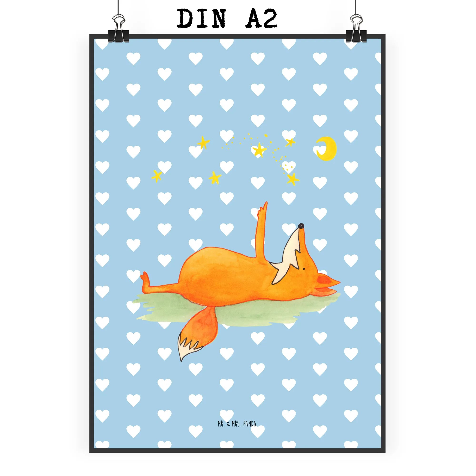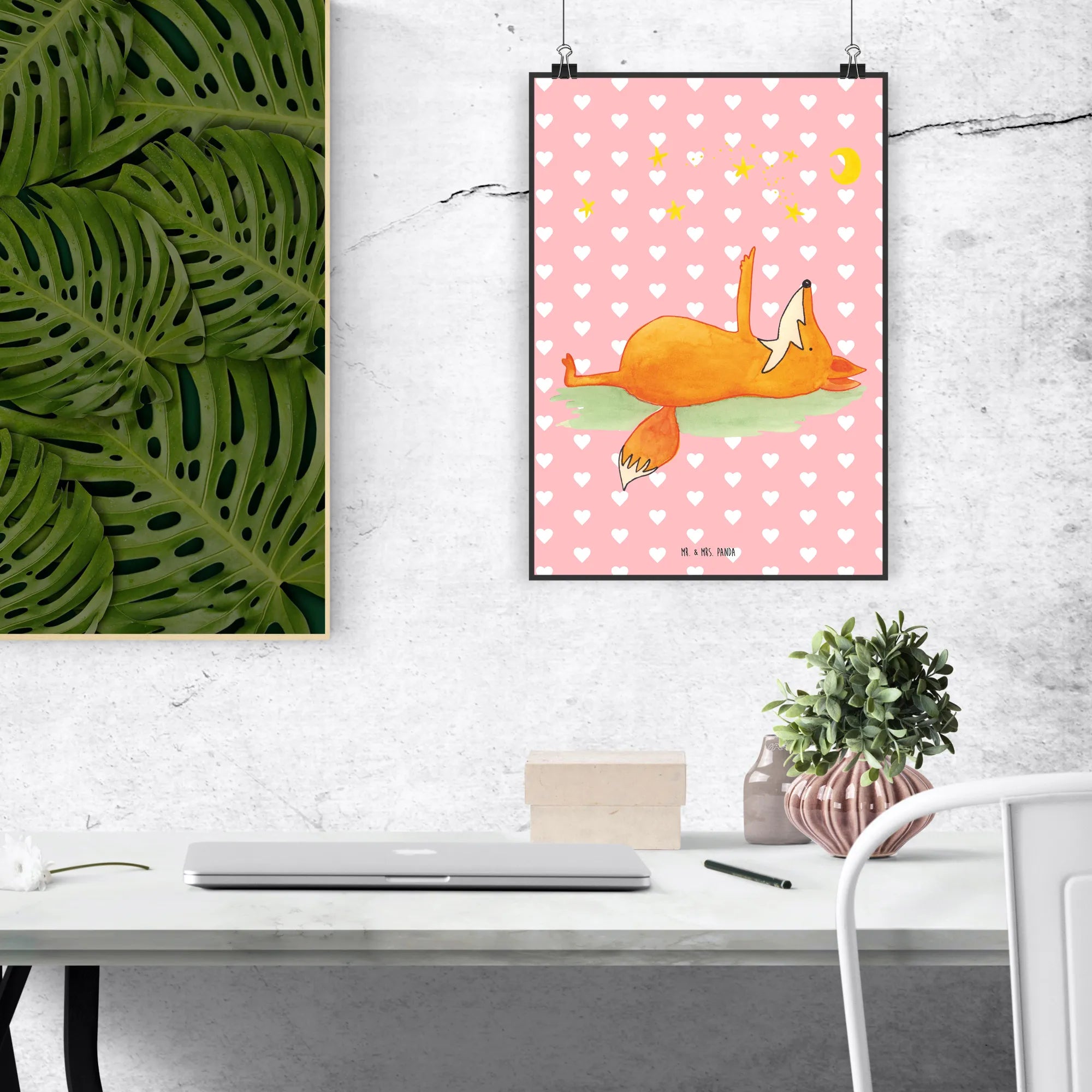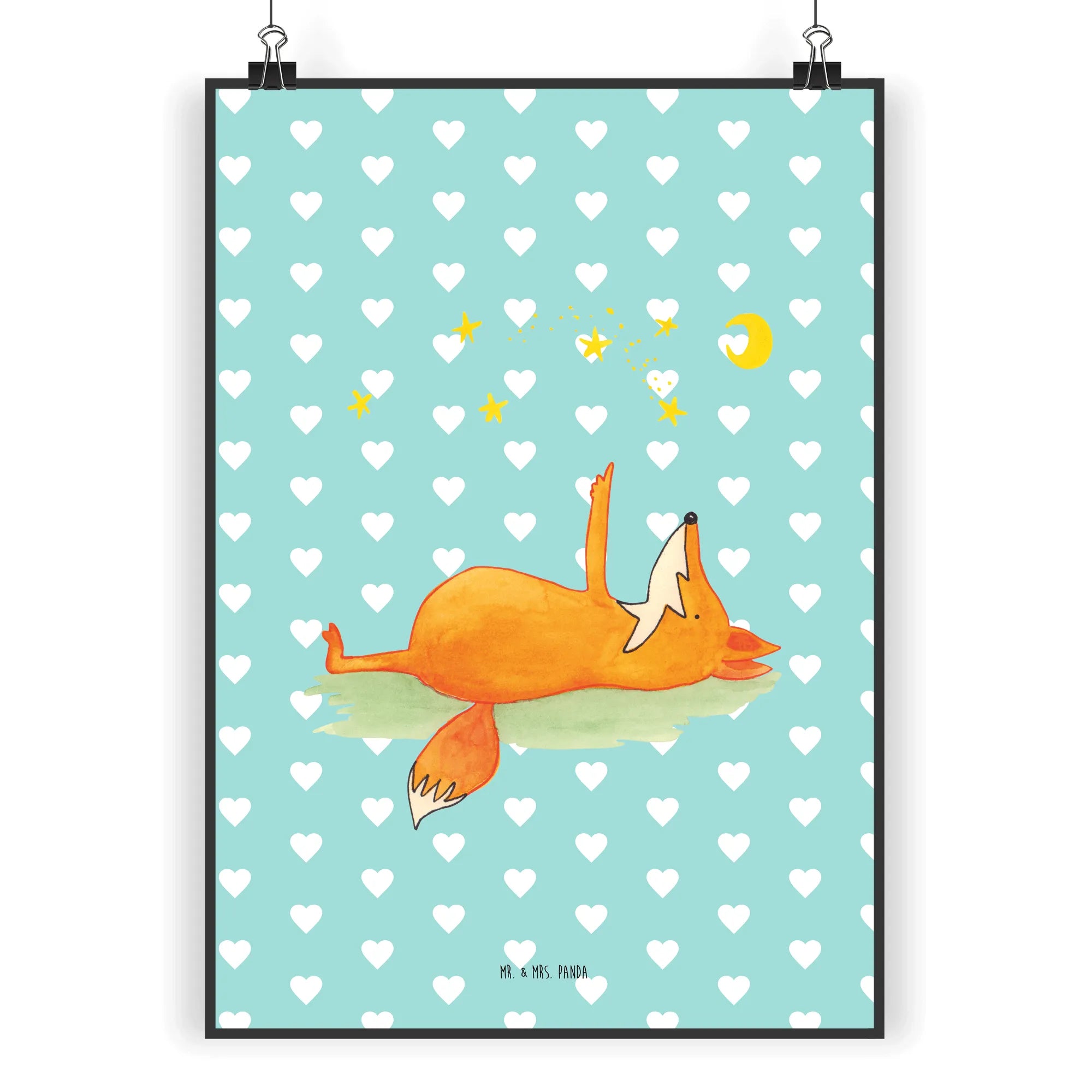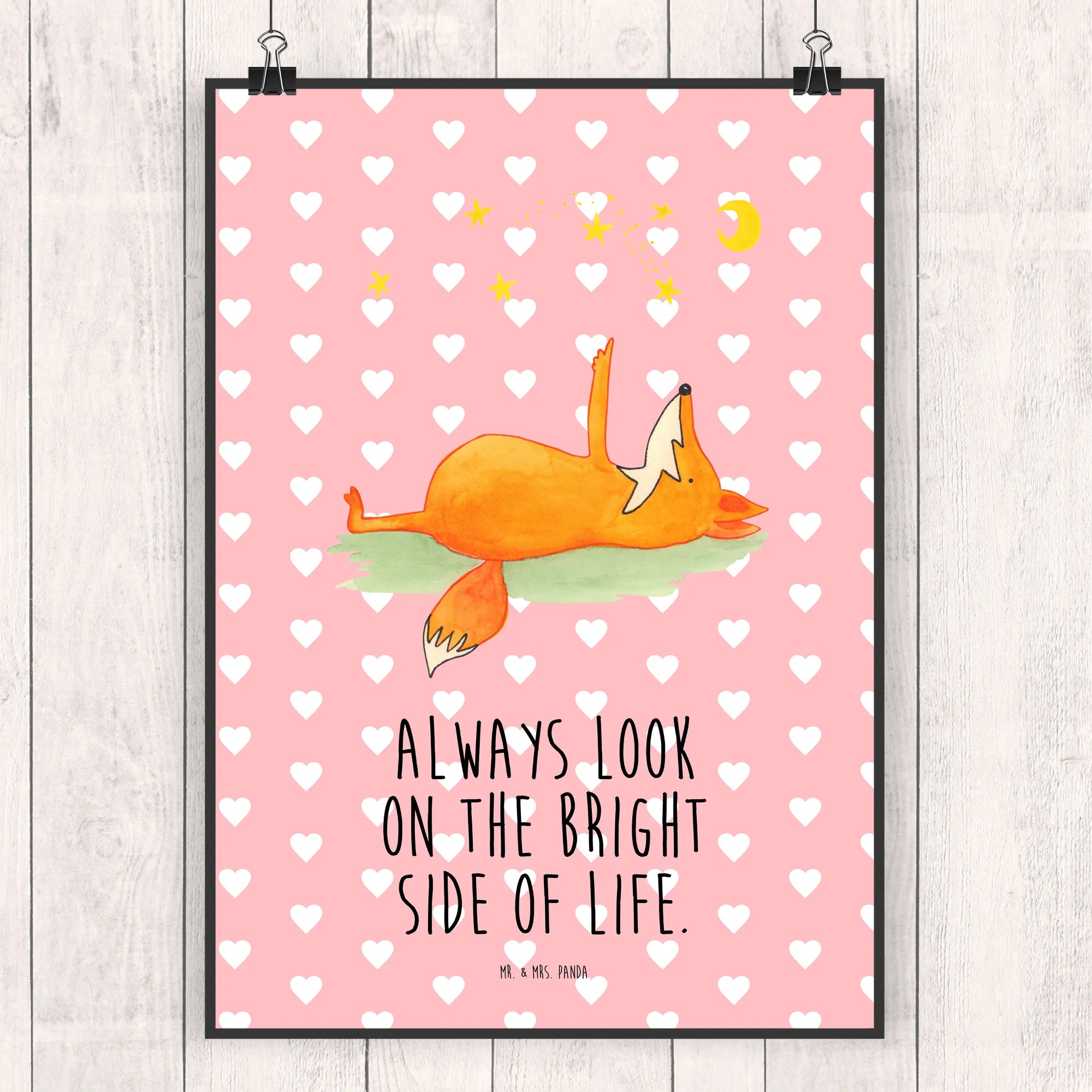 Unser „Fuchs Sterne“ Poster aus der Fuchs Kollektion von Mr. & Mrs. Panda vereint liebevolle Handzeichnung, pastellige Farben und einen aufmunternden Spruch: Always look on the bright side of life. Der süße Fuchs liegt entspannt auf dem Rücken und schaut begeistert zu den funkelnden Sternen – ein Motiv, das Wärme, Romantik und Zuversicht ausstrahlt.