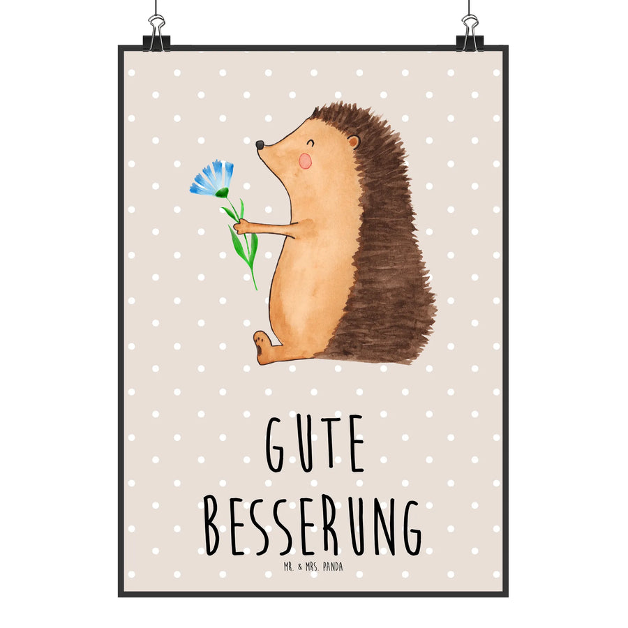 Poster Hedgehog Flower - DIN A2 - with a saying - Beige Pastel