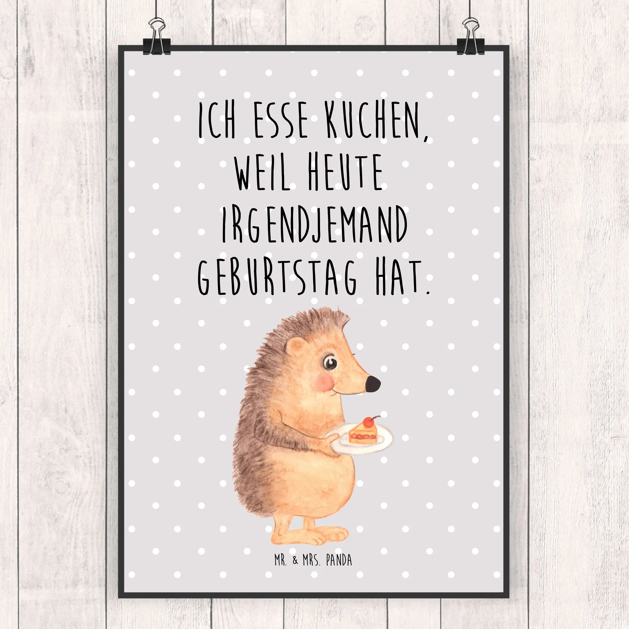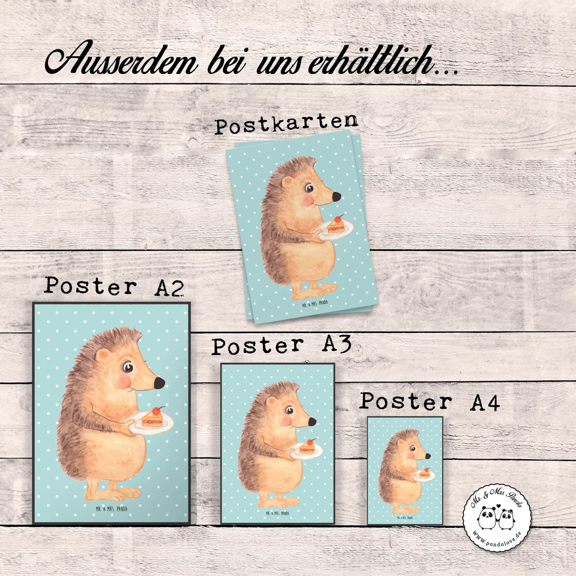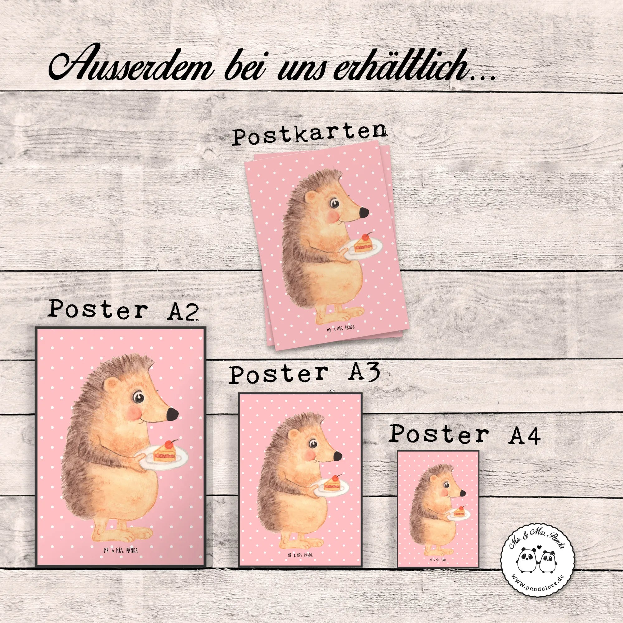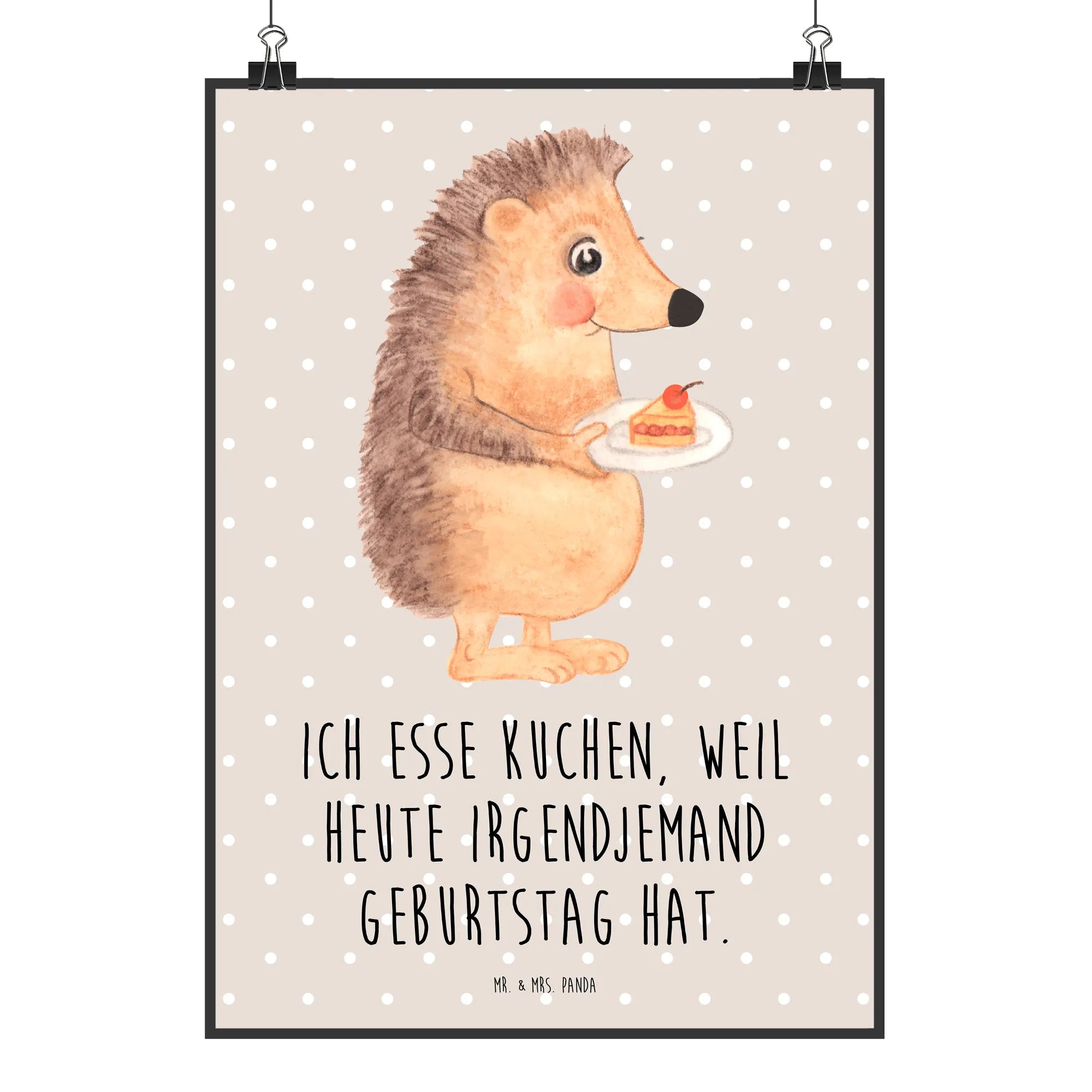 Poster Hedgehog piece of cake - DIN A2 - with saying - Beige Pastel