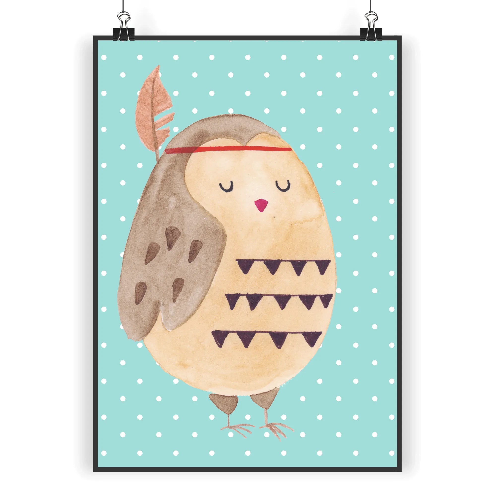 Poster Owl feather headdress - DIN A5 - with saying - White