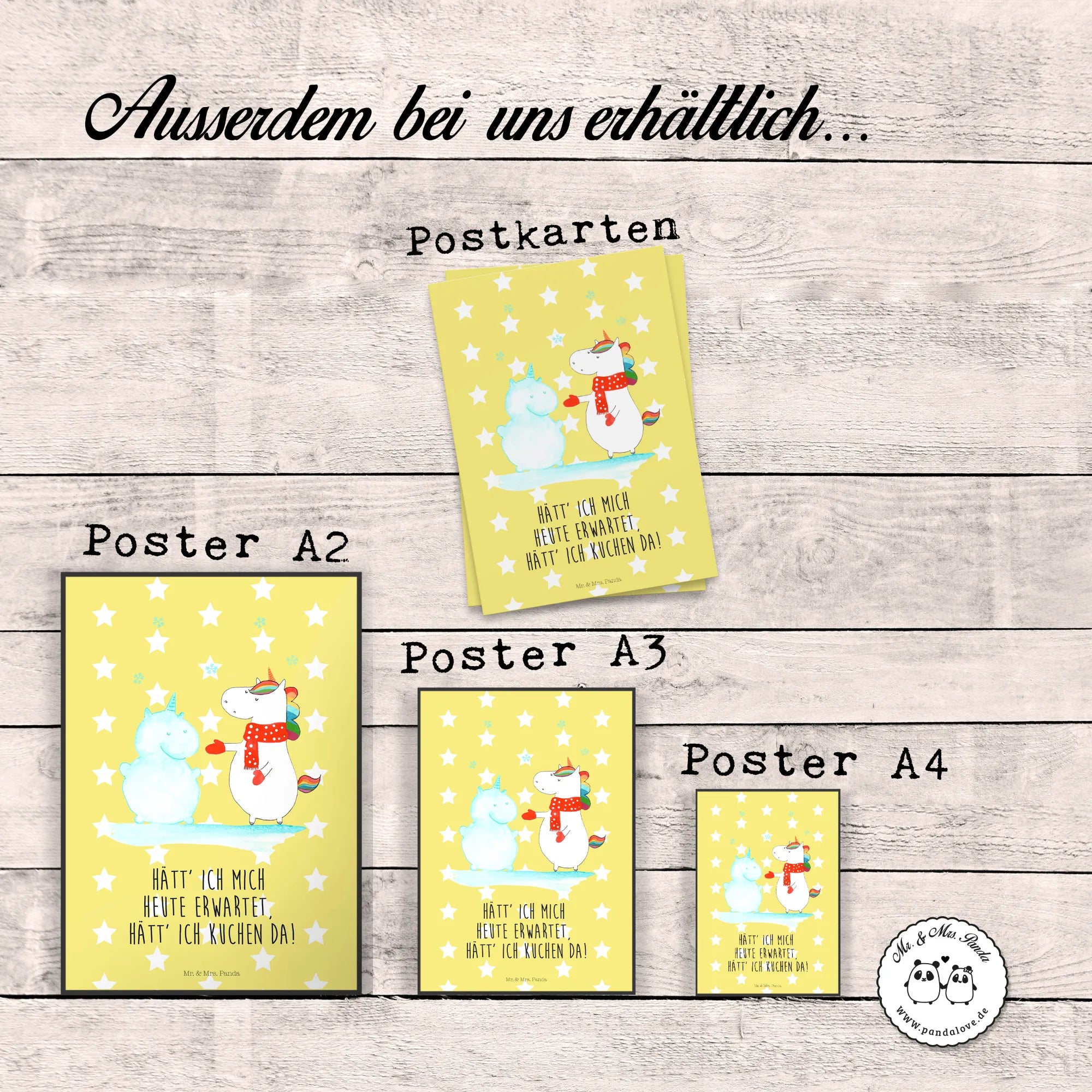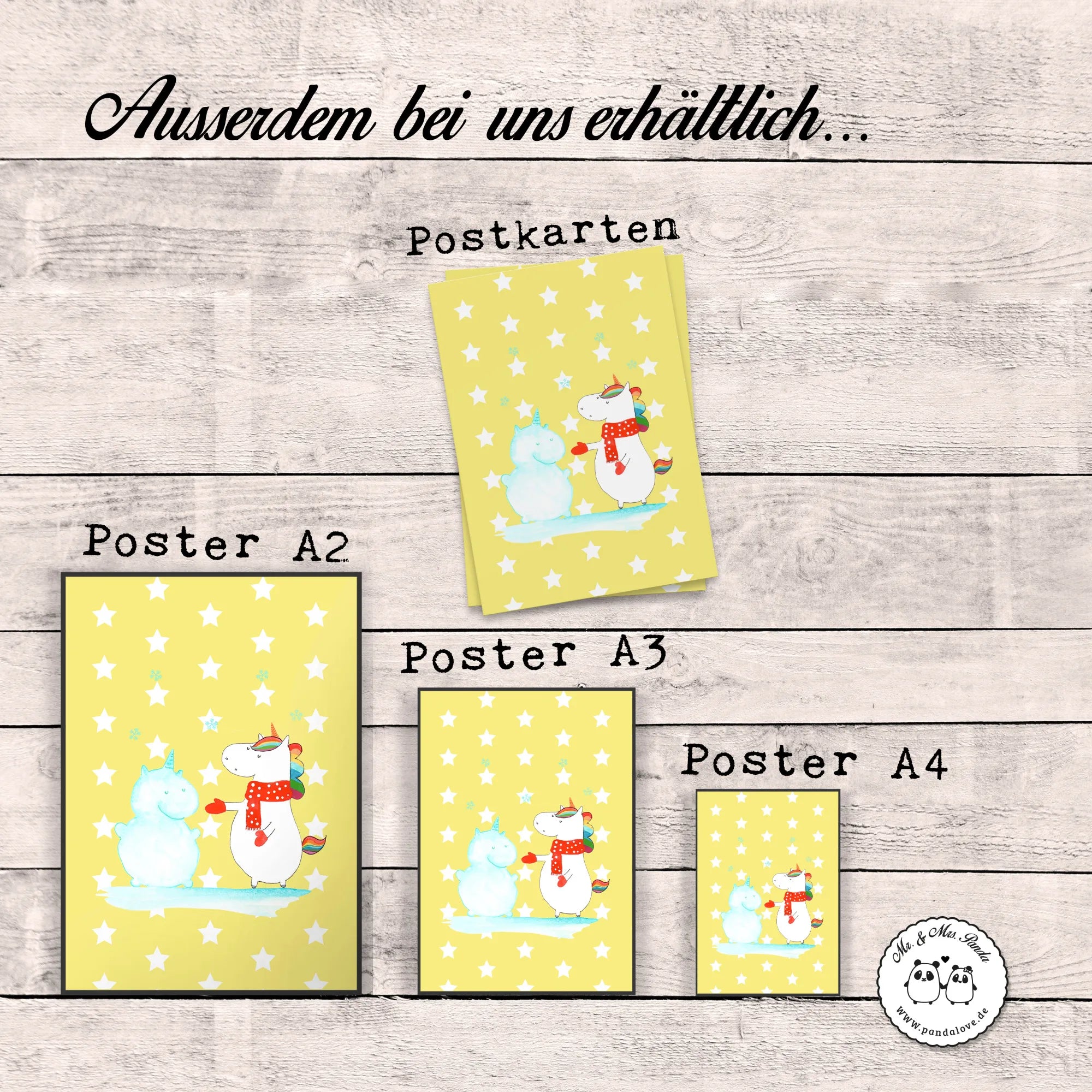 Hol dir das Einhorn Schneemann Poster als liebevolle Deko für die kalte Jahreszeit und verschenke ein Lächeln – von Mr. & Mrs. Panda, mit viel Herz für Einhorn-Fans.