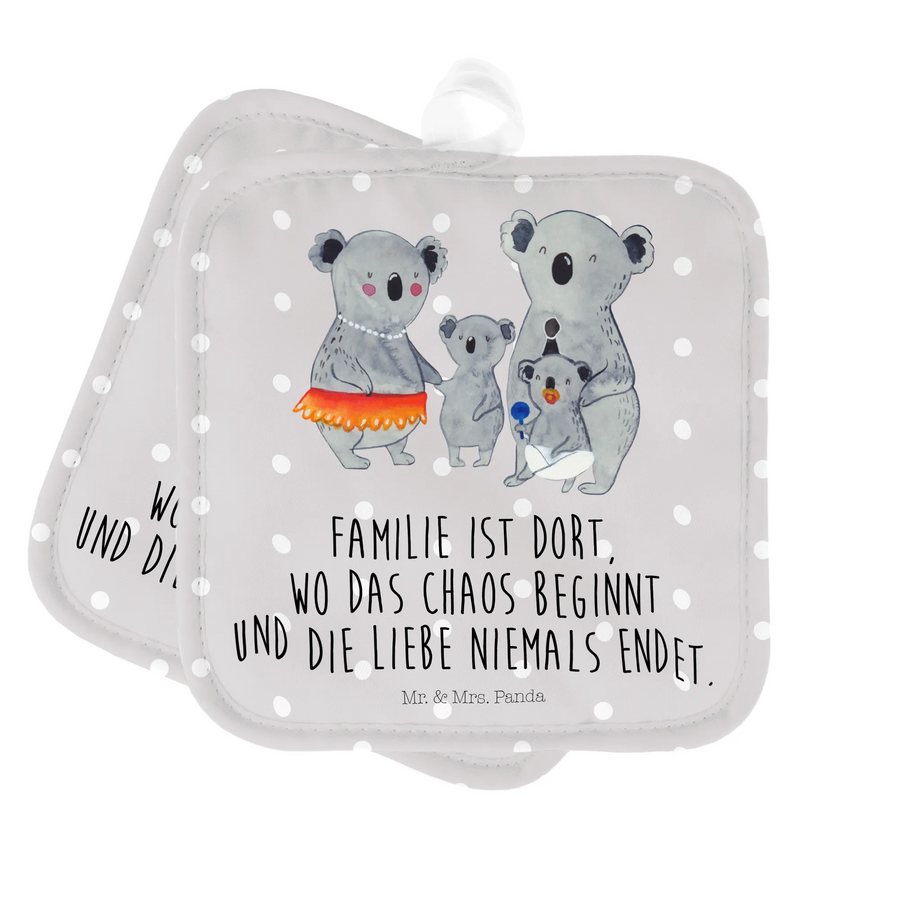 Pot holder Koala Family - with saying - Grey Pastel