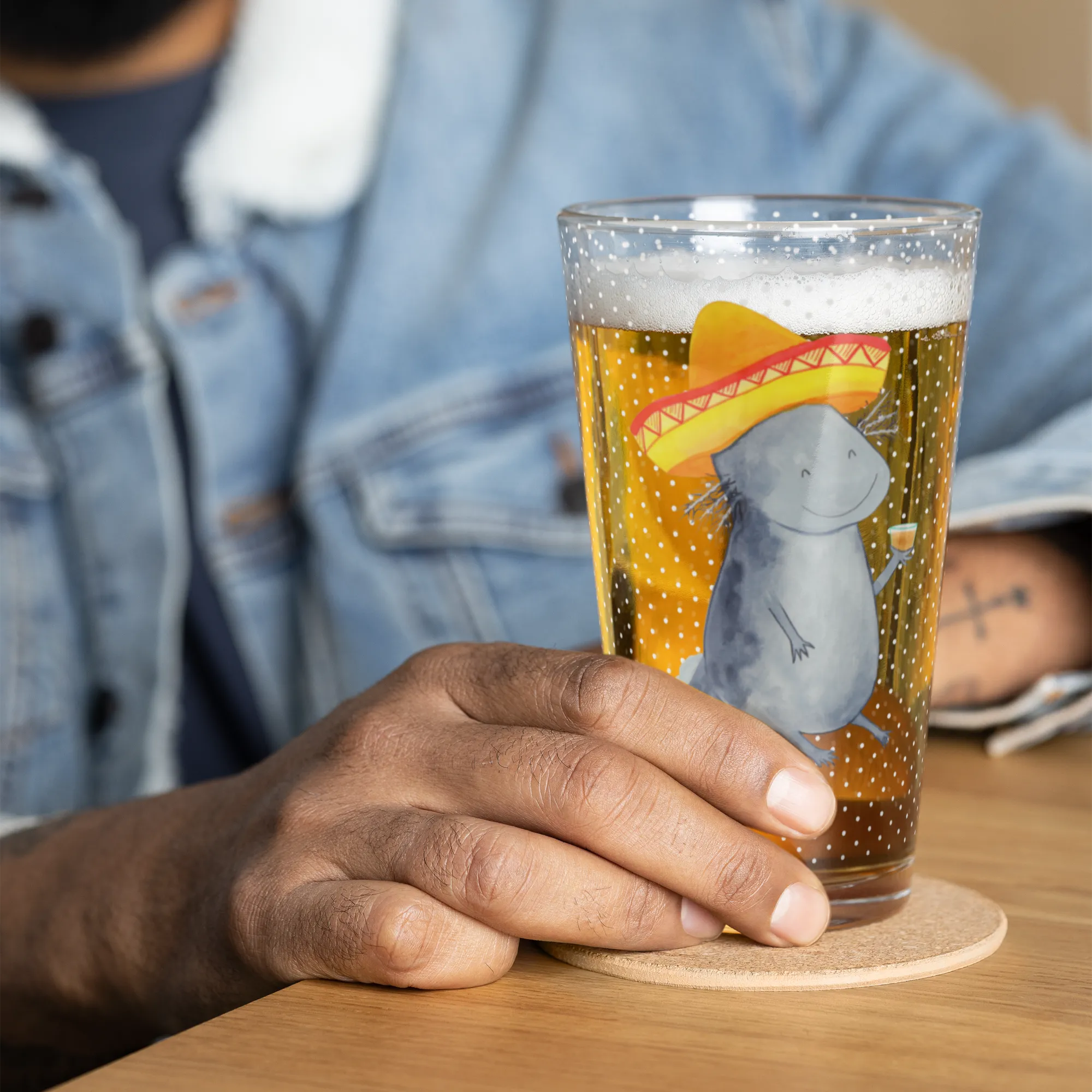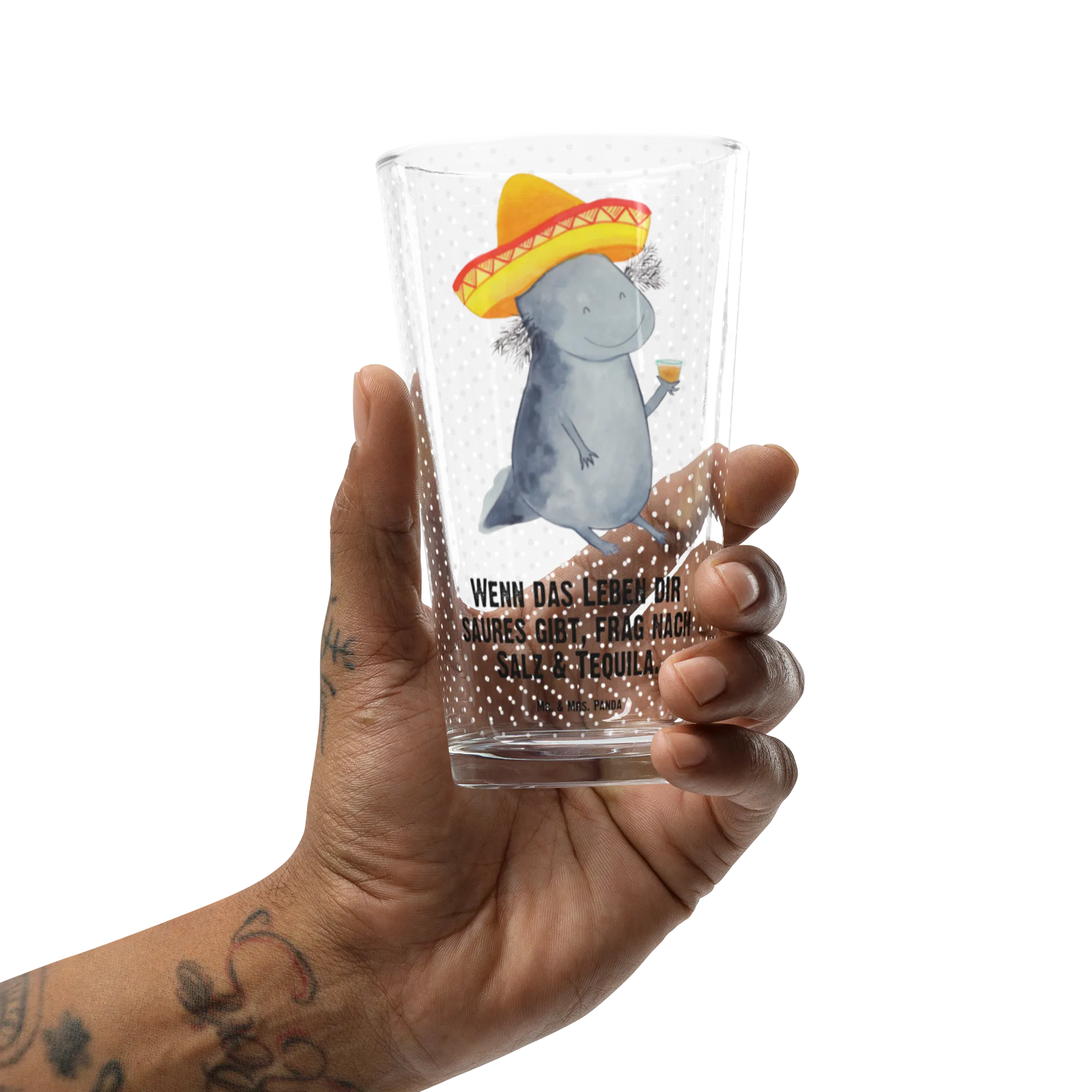 Premium drinking glass axolotl tequila - with a saying