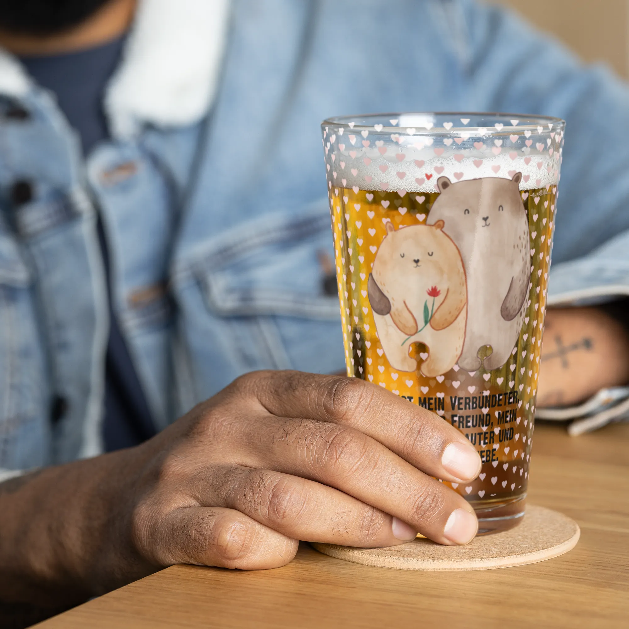 Premium drinking glass Bears in love - with a saying