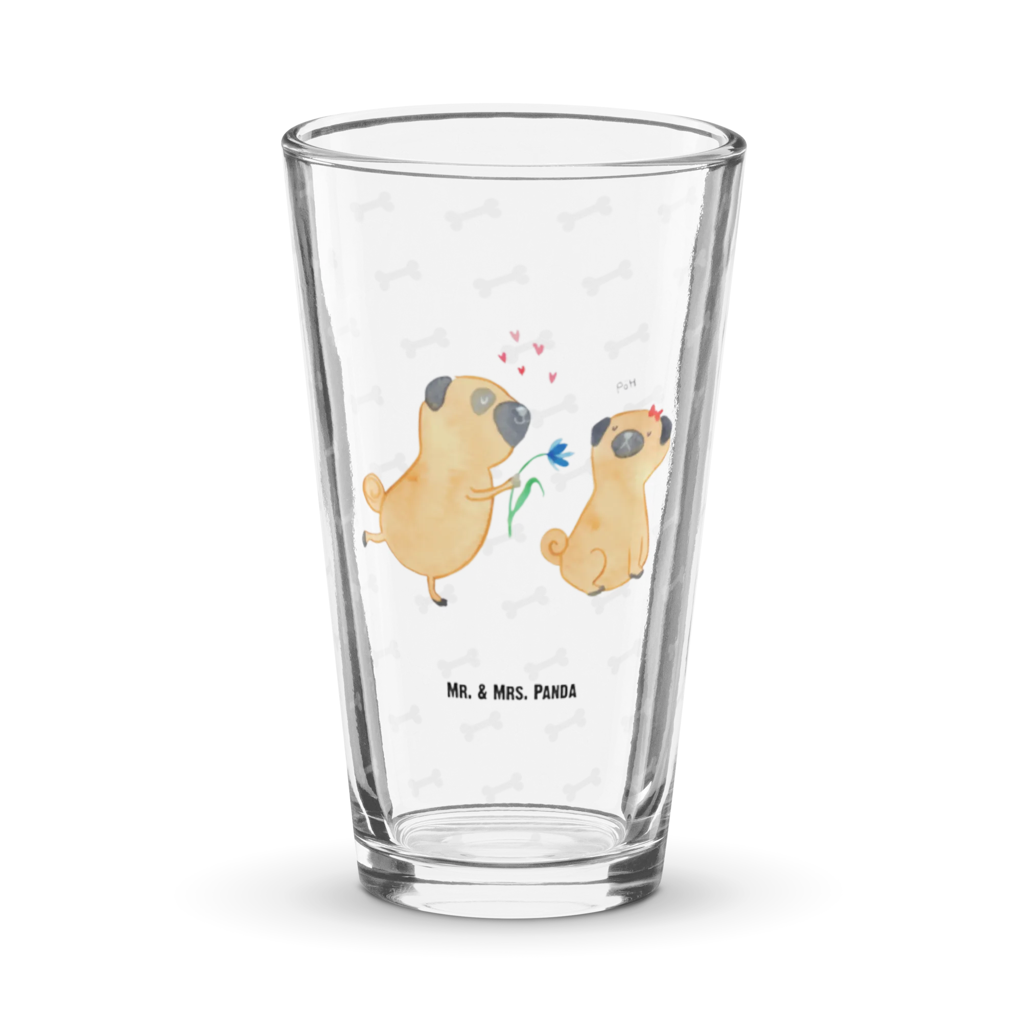 Mr. & Mrs. Panda Premium Trinkglas „Mops verliebt“