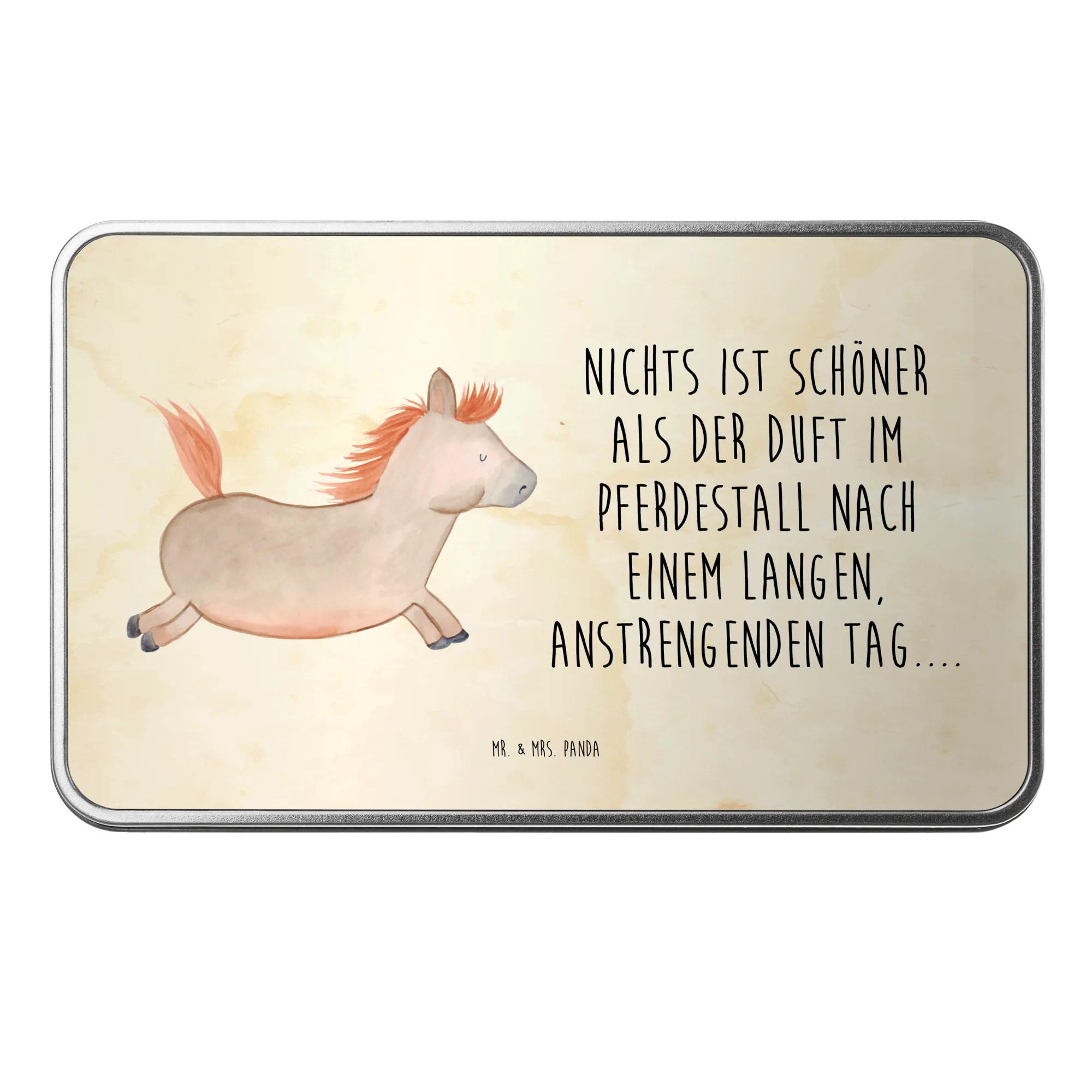 Imagine being greeted by the joyful sight of a cute horse leaping through the air each time you open this metal tin! The stunning artwork has been lovingly hand-drawn by Mrs. Panda, capturing the spirit of adventure and the carefree joy that comes with spending time with horses. Whether you own a pony, have a special place in your heart for these majestic creatures, or simply appreciate farm aesthetics, this tin is perfect for you!