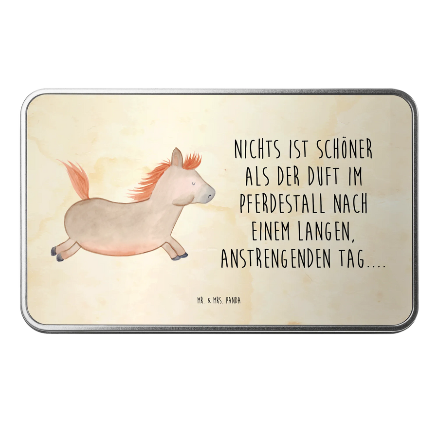 The Mr. & Mrs. Panda Metal Tin makes a thoughtful gift for a variety of occasions! Birthdays, holidays, or as a delightful surprise for a fellow horse enthusiast—this tin is sure to bring smiles. Plus, with the charming slogan, "Nichts ist schöner als der Duft im Pferdestall nach einem langen, anstrengenden Tag....", it resonates with those who treasure the simple joys of farm life.