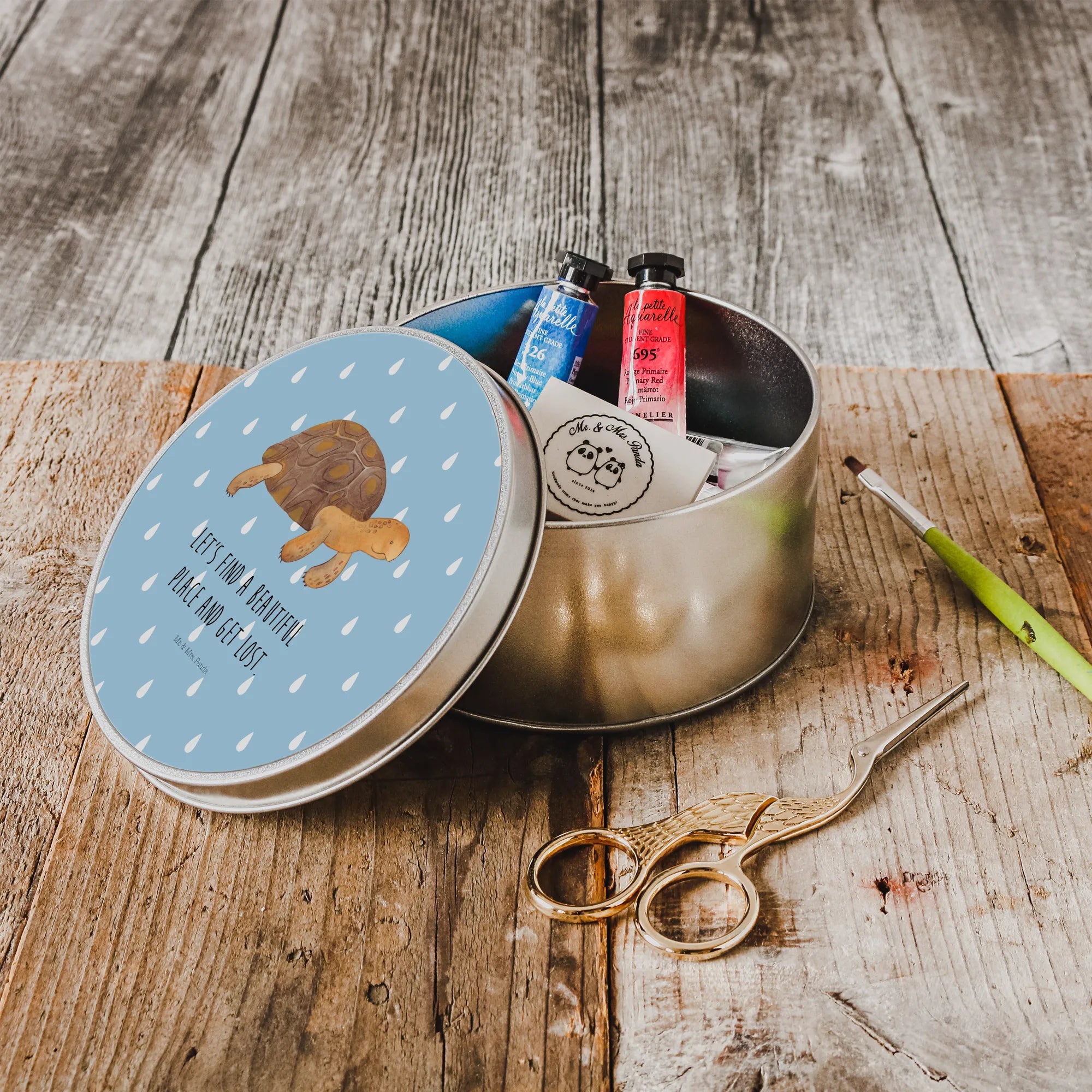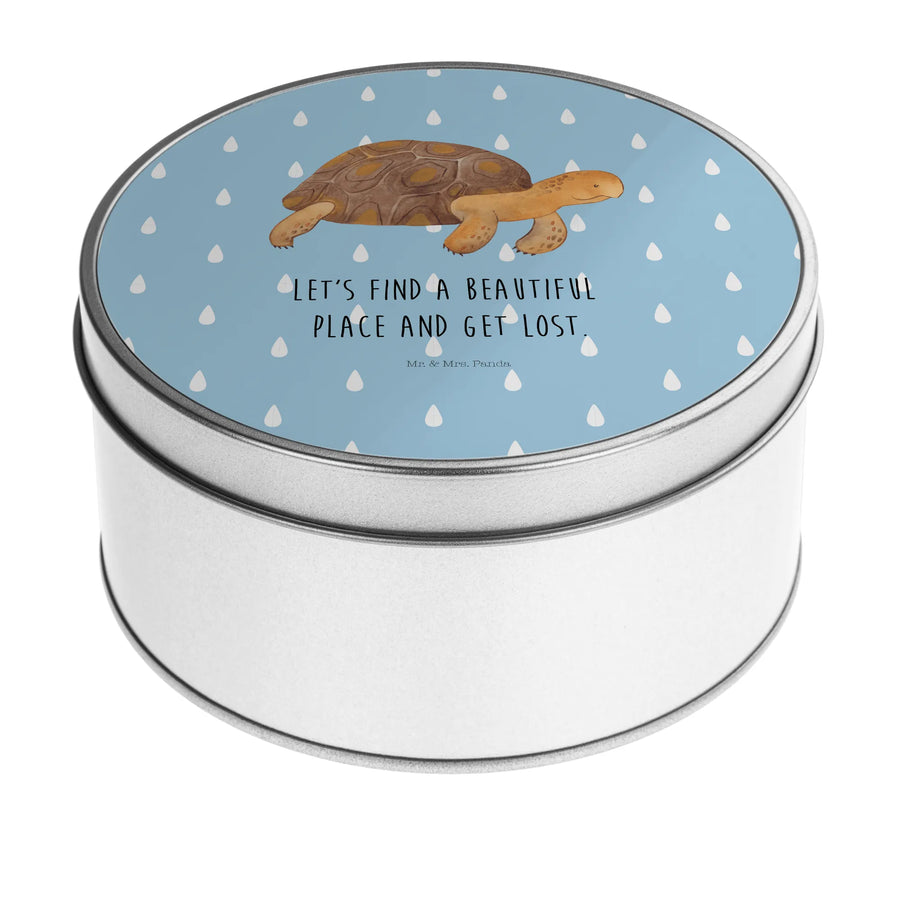 The design showcases a beautifully illustrated turtle, gracefully marching along, inspiring you to find a beautiful place to get lost. This friendly creature, depicted in soft browns and gentle oranges, exudes a feeling of peace and tranquility. Every glance at this tin can transport you (or your gift recipient!) to a serene underwater world, making it not just a gift, but a gateway to adventure.