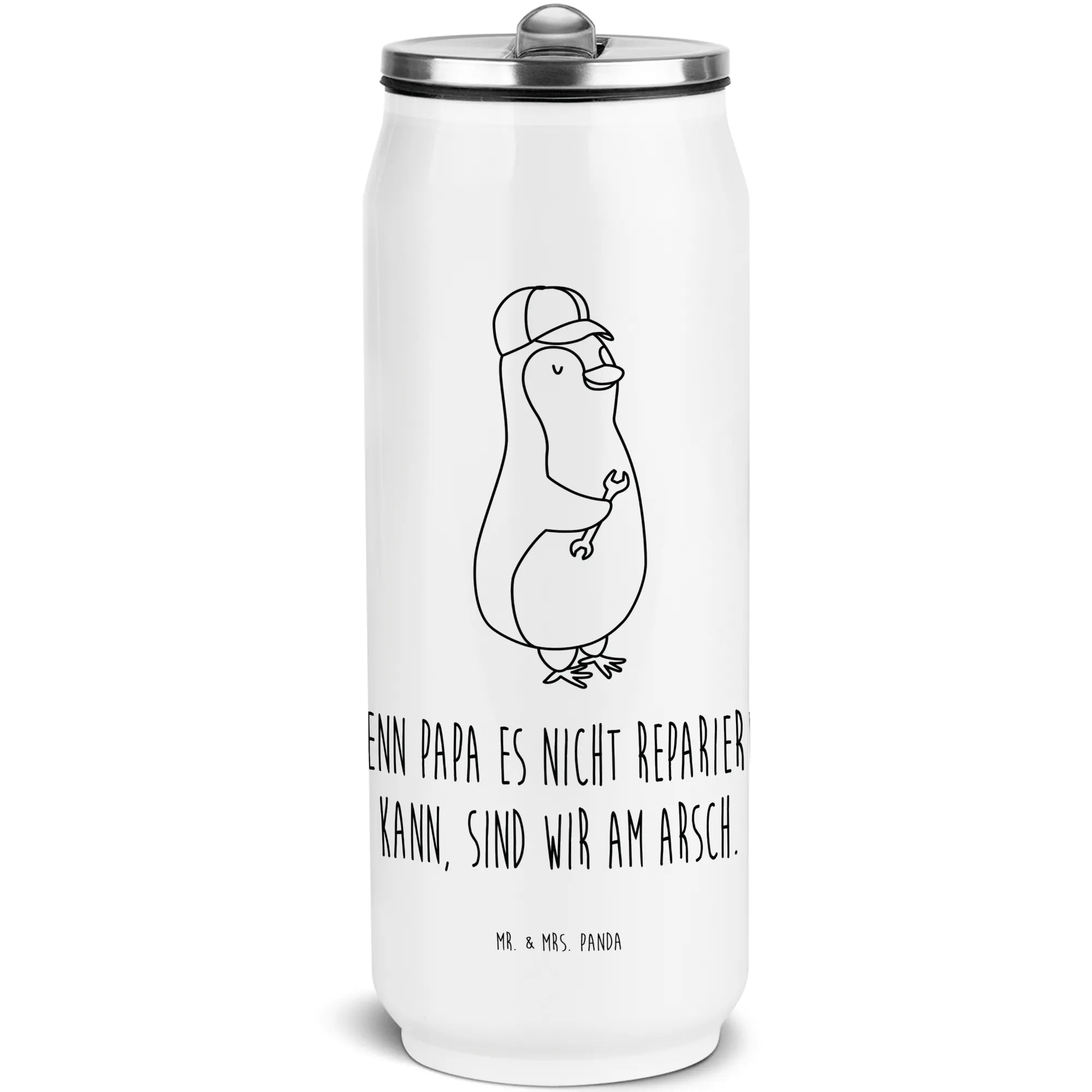 Give your dad something special this Father's Day with the adorable Mr. & Mrs. Panda Drink Can Water Bottle featuring the charming motif "If Daddy can't fix it, we're screwed." This unique gift isn't just a practical drink container; it’s a symbol of love and the playful bond between a father and his children.