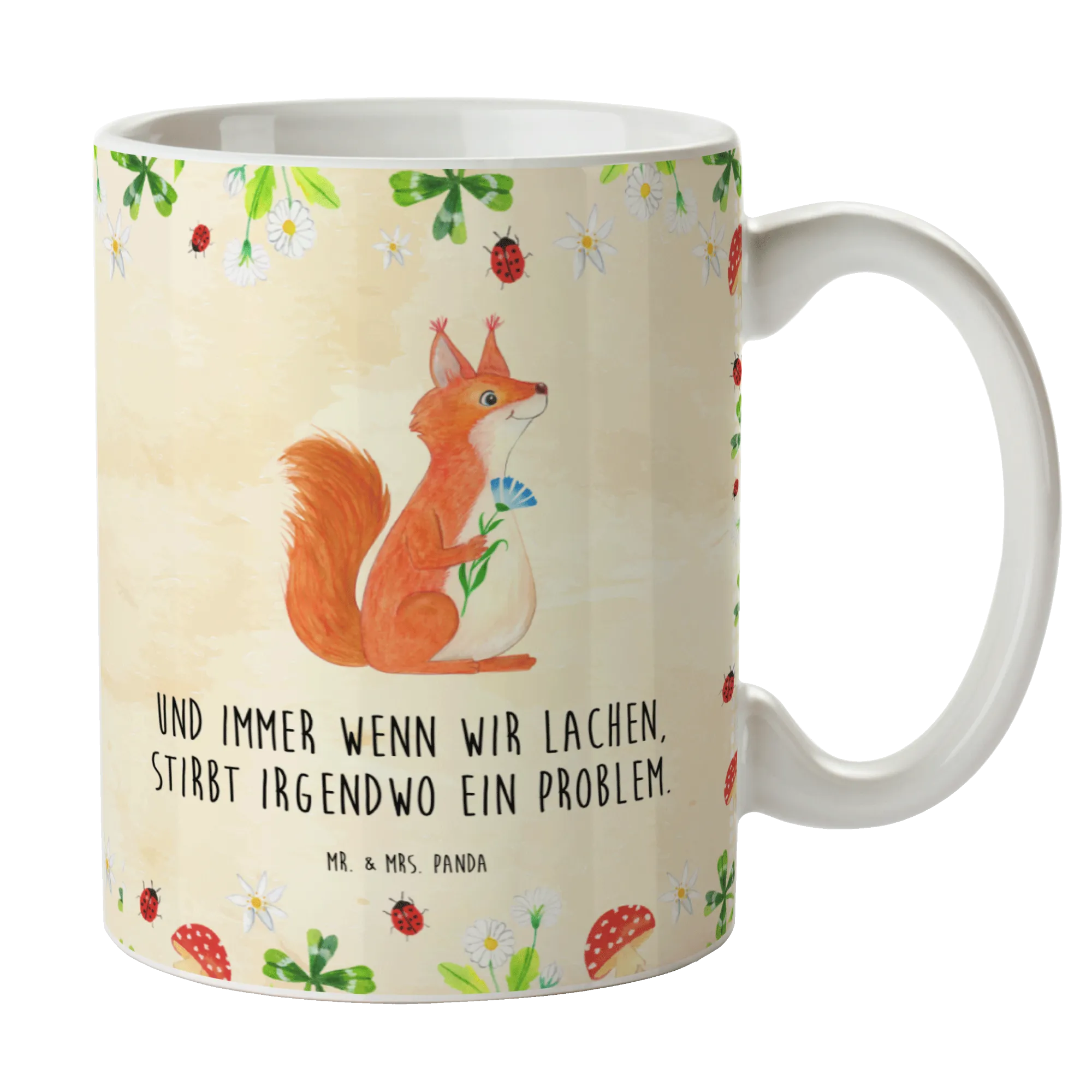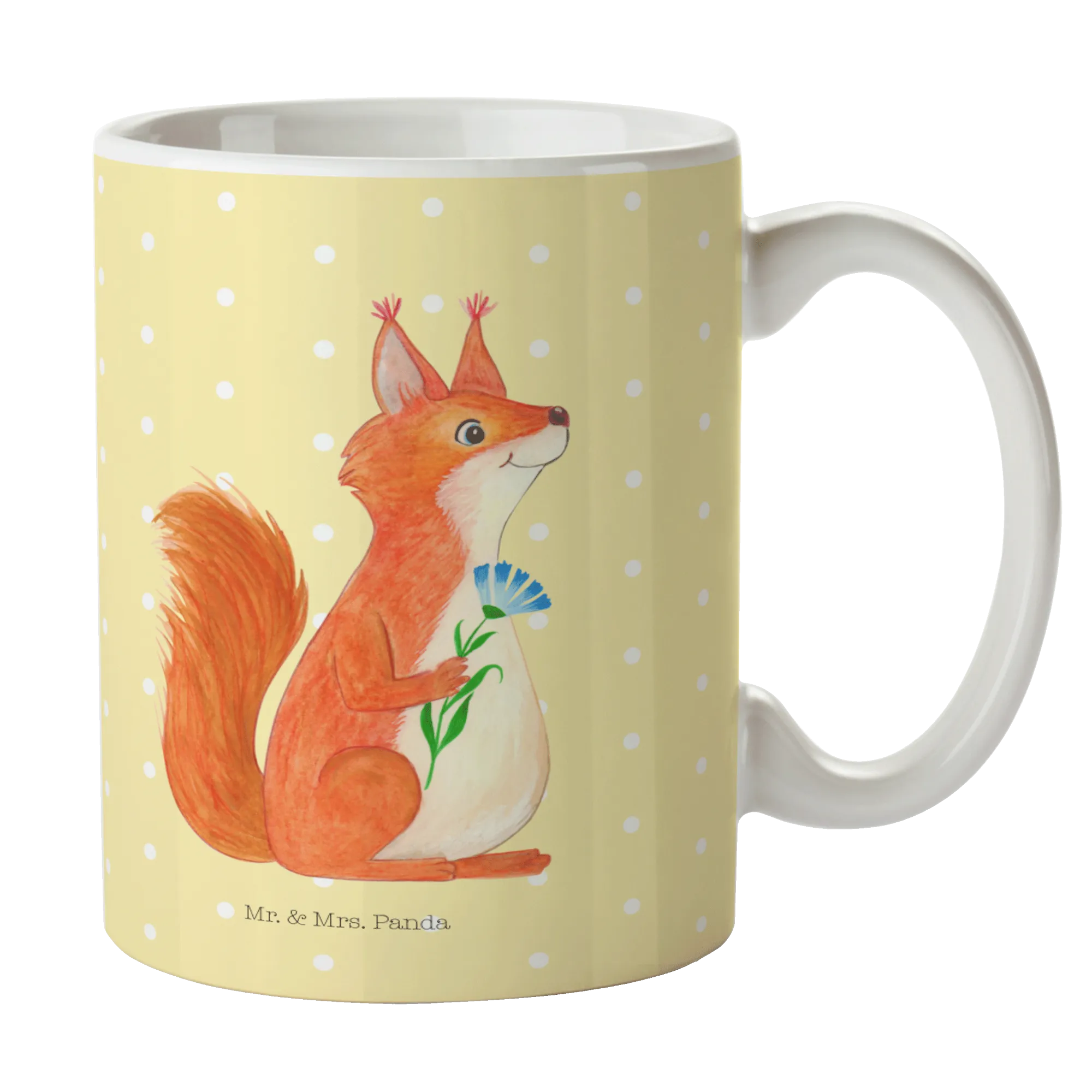 Mug Squirrel flower - with a saying - Ceramics - Yellow Pastel