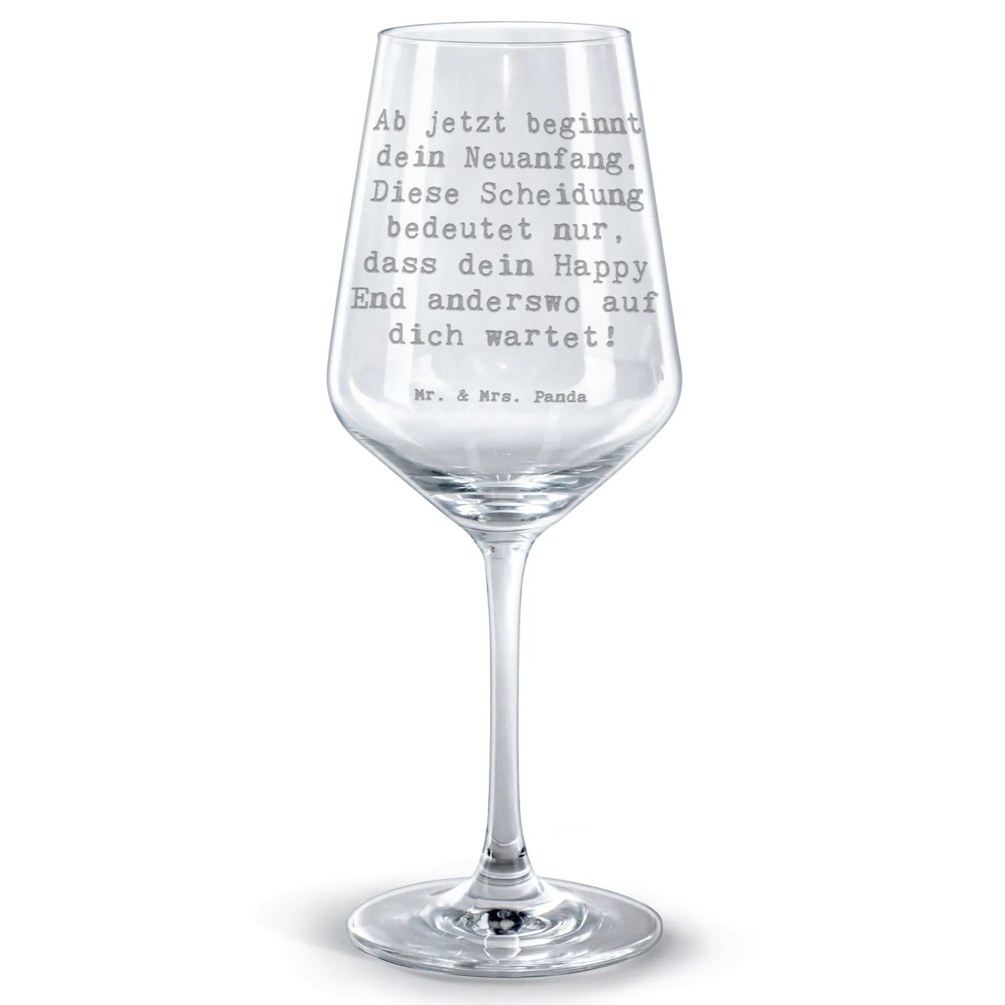 Red Wine Glass Saying Ab jetzt beginnt dein Neuanfang. Diese Scheidung bedeutet nur, dass dein Happy End anderswo auf dich wartet!