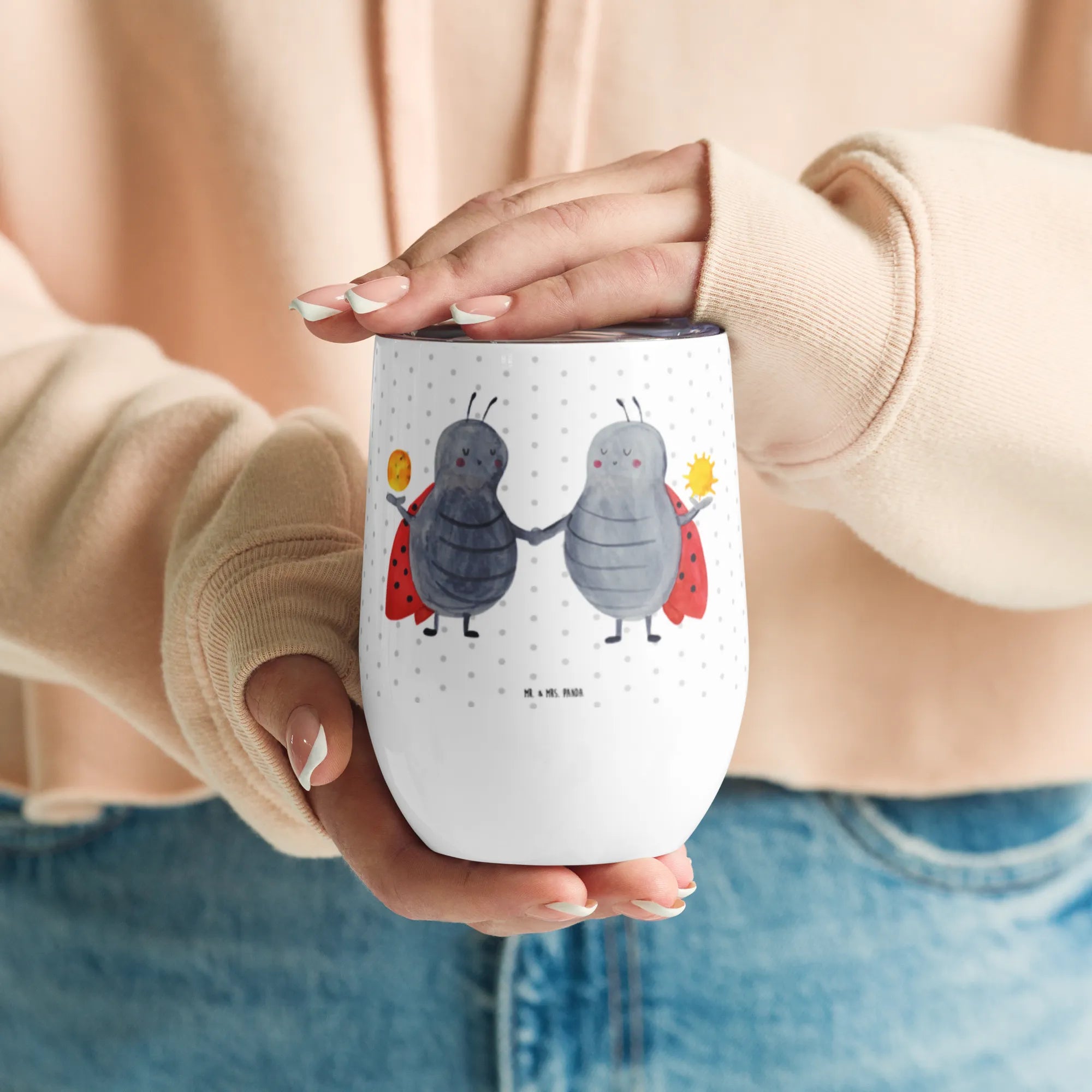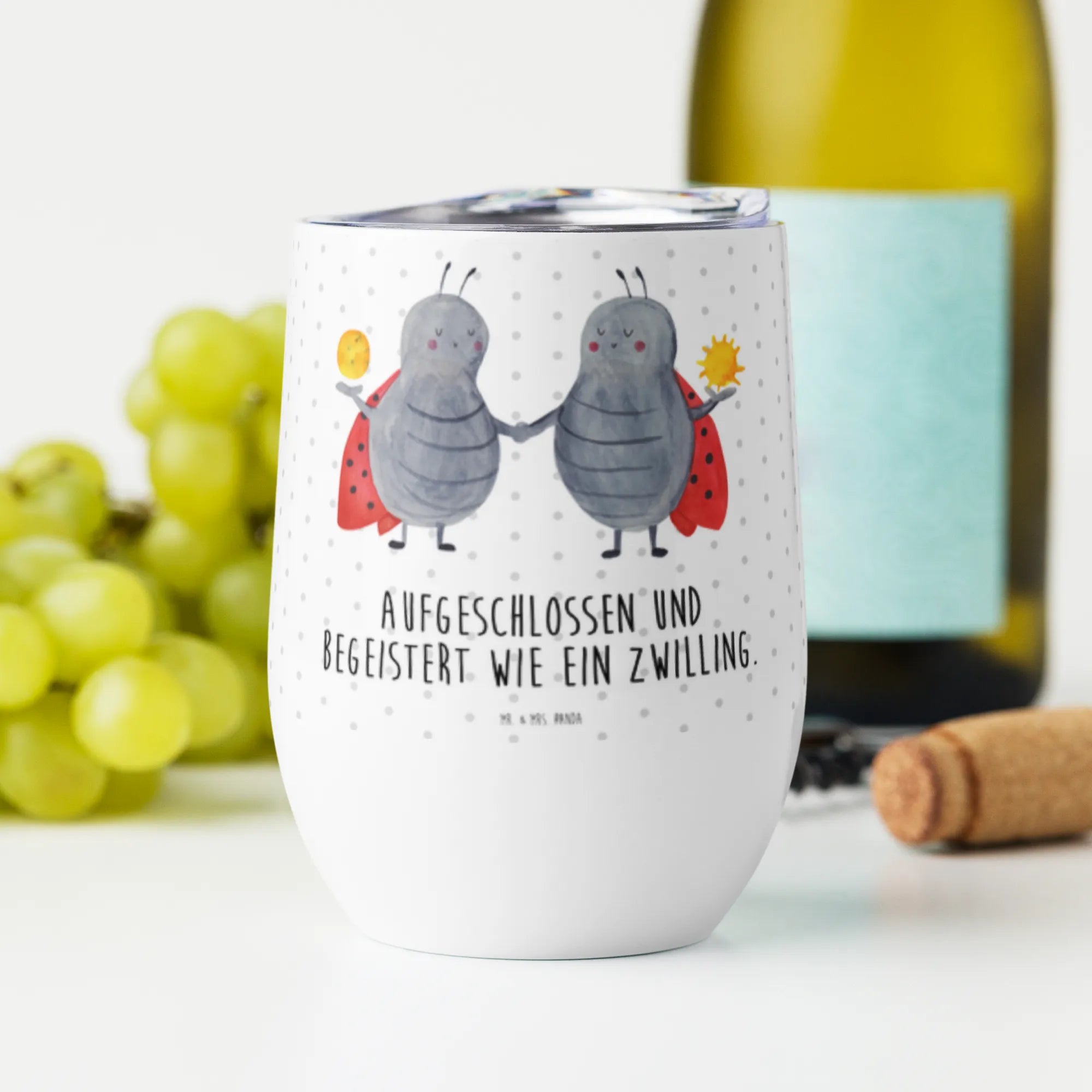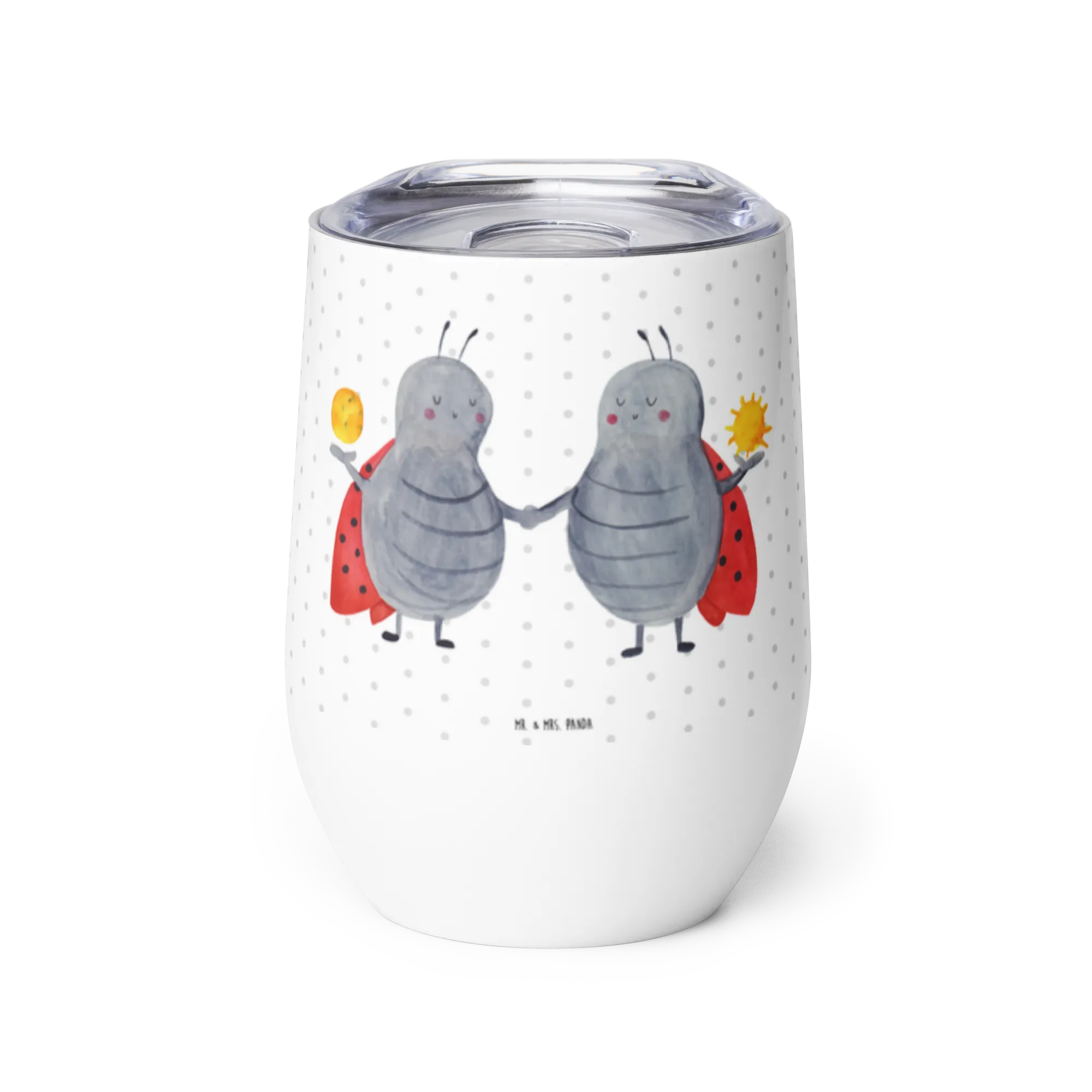 Enjoy every moment with the stylish wine cup from Mr. & Mrs. Panda! This delightful cup has a 375 ml (12 oz) capacity and features innovative double-wall vacuum insulation that guarantees drinks maintain their desired temperature for up to 5 hours. Standing at 120 mm, it brings flair to any occasion. Adorned with charming designs and sentiments, it’s perfect for celebrating life’s little pleasures, whether at a gathering with friends or a quiet evening at home. This wine cup makes an excellent gift for anyone who enjoys beautiful drinkware. Please remember that it's best to hand wash to keep the design pristine. Raise your glass to life and love with Mr. & Mrs. Panda!