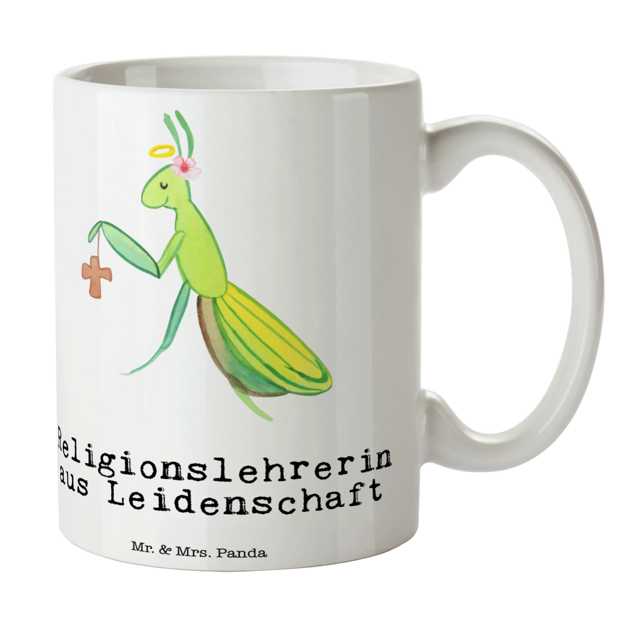 Entdecke die zauberhafte Kaffeetasse aus der Berufe-Kollektion von Mr. & Mrs. Panda – ein liebevoll gestaltetes Geschenk für die Religionslehrerin, das Dankbarkeit und Wertschätzung ausdrückt. Auf der Vorderseite findest du das handgezeichnete Aquarellmotiv einer süßen Gottesanbeterin mit Heiligenschein, die ein Kreuz in der Hand hält, begleitet vom liebevollen Spruch „Religionslehrerin aus Leidenschaft“. Genau die richtige Mischung aus Respekt, Charme und Verspieltheit. ☕️