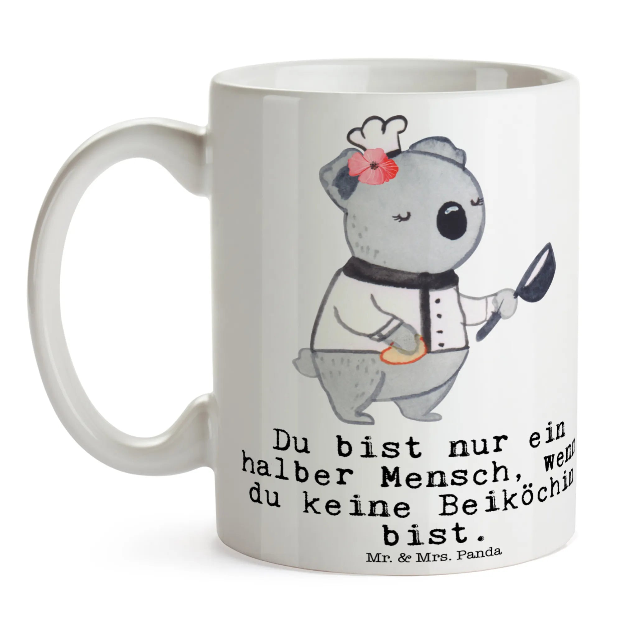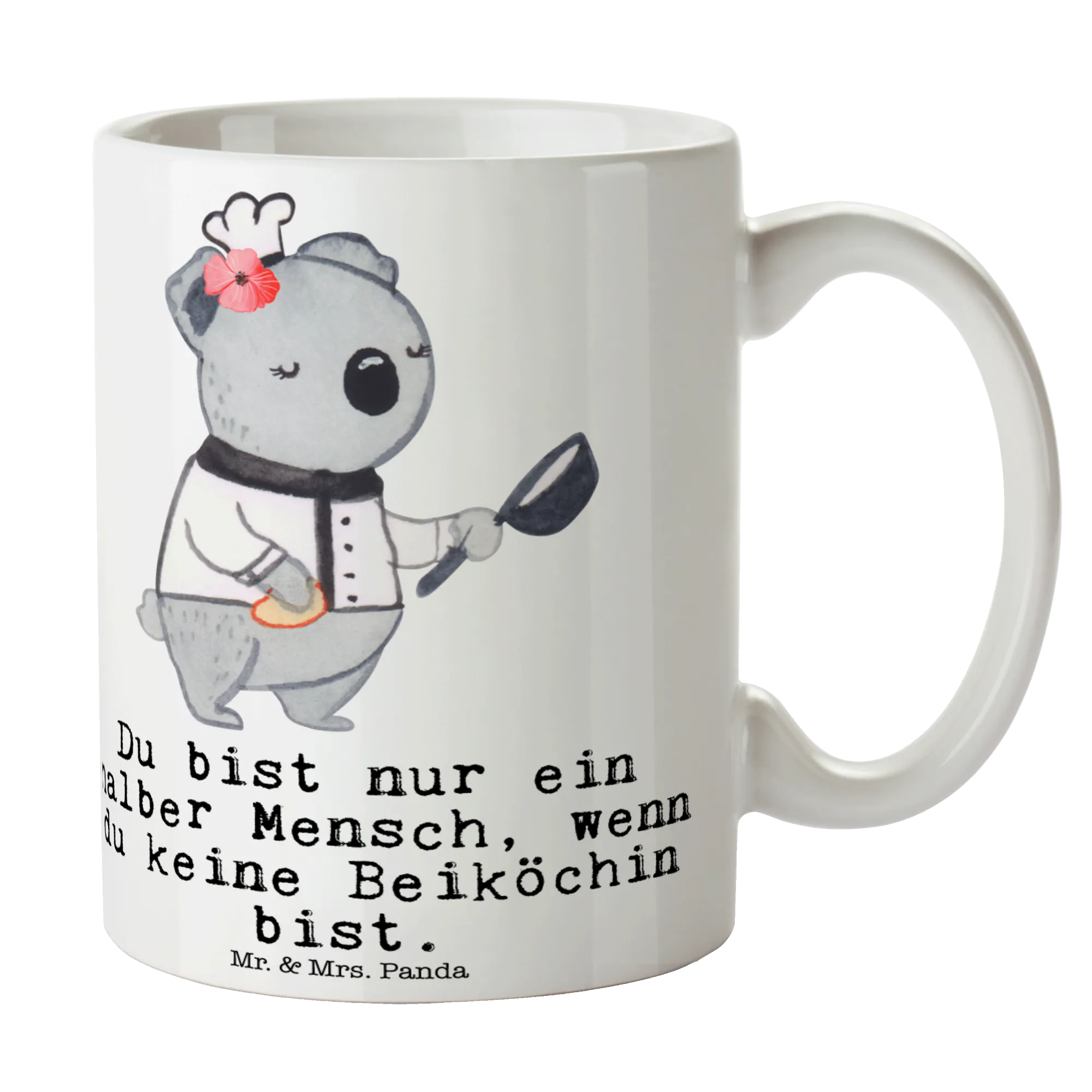 Introducing the delightful Mr. & Mrs. Panda Ceramic Mug, perfect for all the assistant cooks out there! This beautifully designed mug is made from high-quality ceramics and features a whimsical motif of a charming koala dressed as an assistant cook, whisking up delightful dishes with a frying pan in hand. With a filling capacity of 325 ml (11 oz), it's an ideal companion for coffee, tea, or your favorite hot beverage during those busy days in the kitchen.