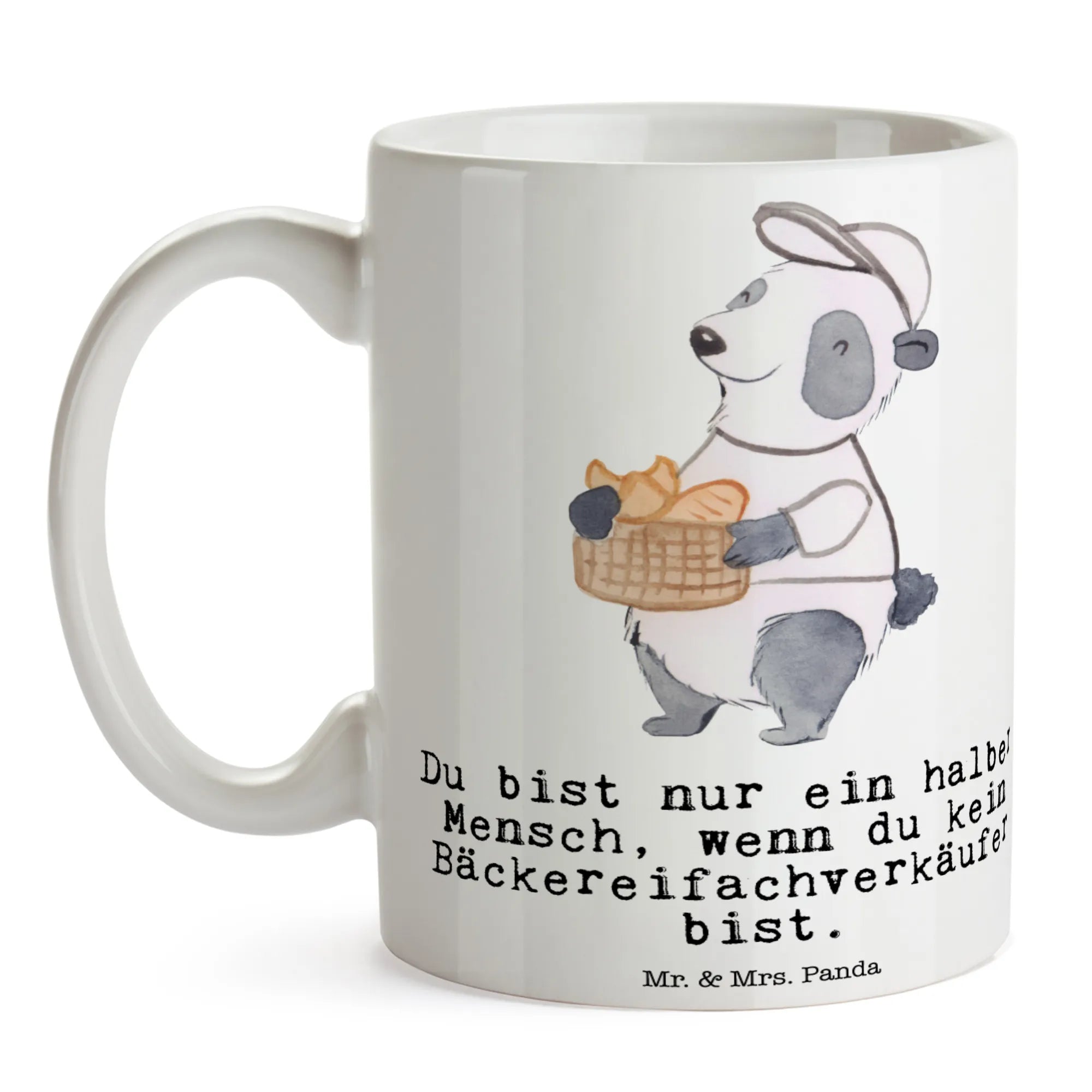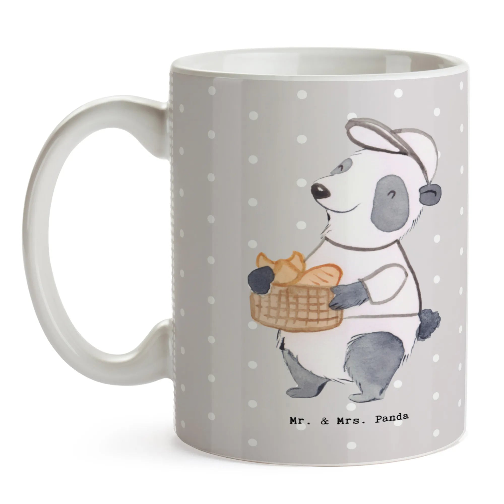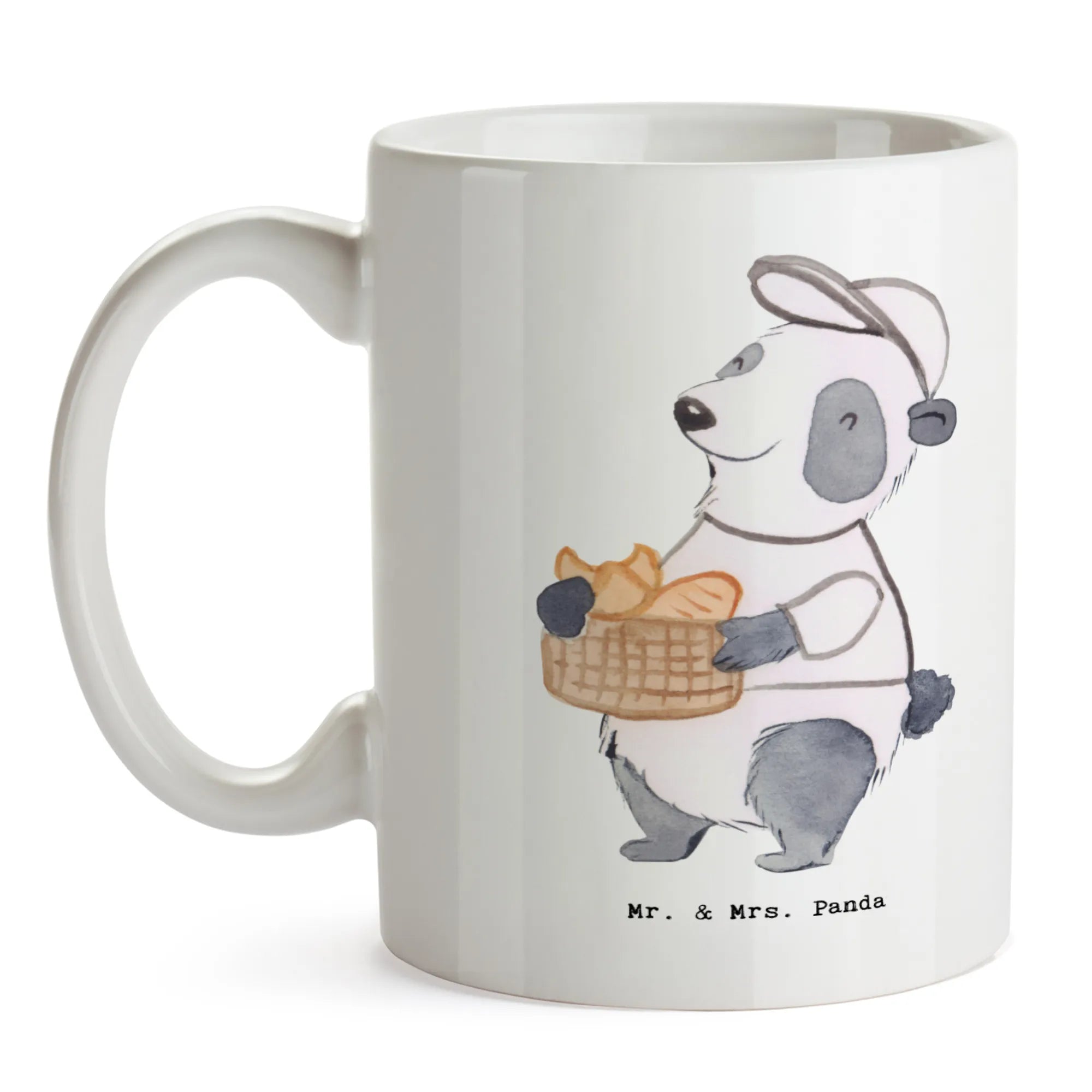 Als Bäckereifachverkäufer begrüßt unser kleine Panda alle Kunden am Morgen mit einem Lächeln. Ihm macht es wahnsinnig viel Freude in einer Bäckerei zu arbeiten. Er verkauft auch wunderschöne Geschenke für Backwarenverkäufer. Folge ihm und entdecke sie alle.