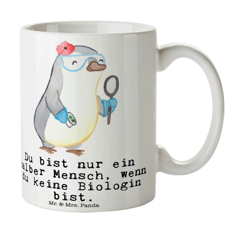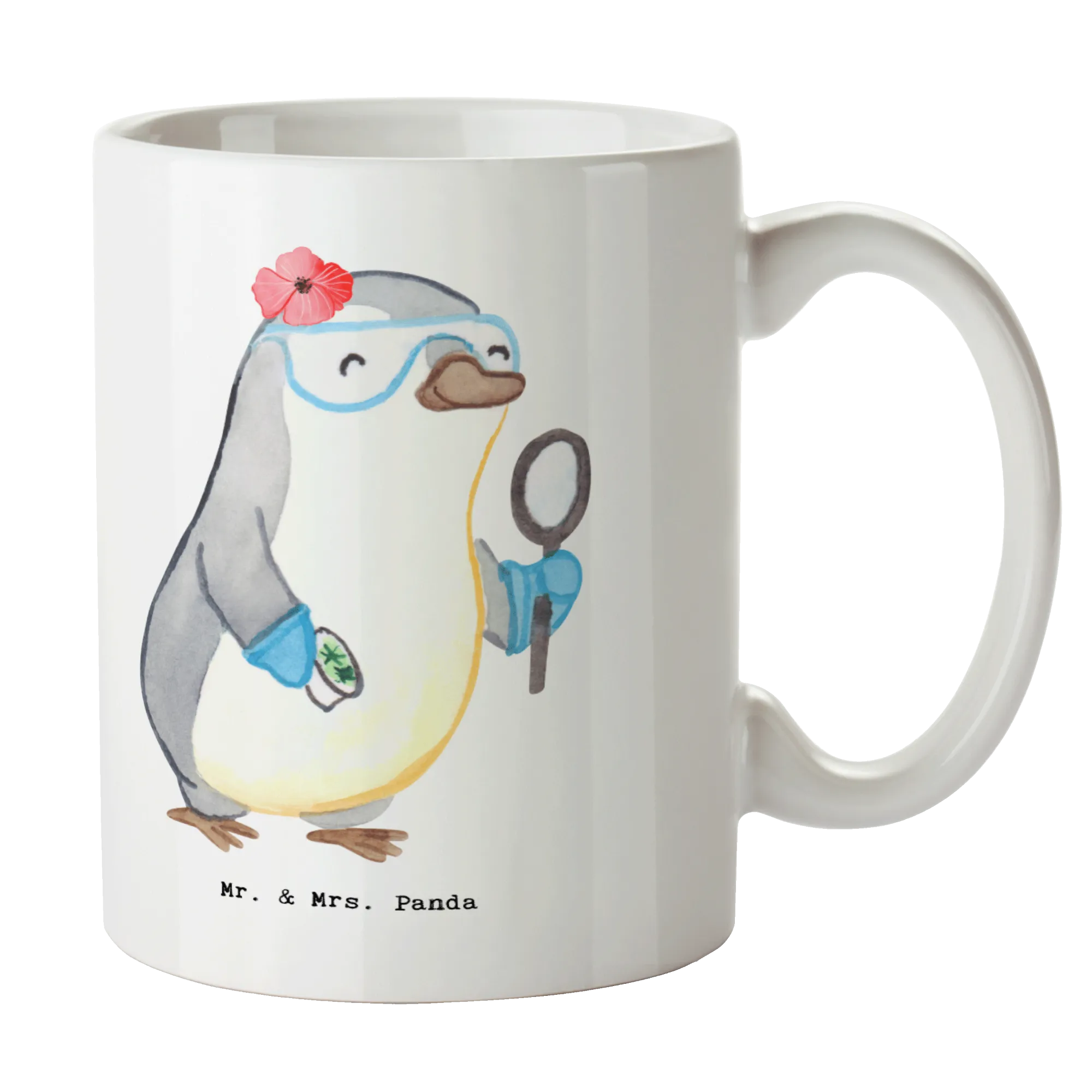 Are you on the lookout for the perfect gift for that special biologist in your life? Look no further! Our stunning ceramic mug featuring a delightful biologist design from the charming Mr. & Mrs. Panda collection is an ideal choice for anyone who loves the wonders of nature and the excitement of scientific discovery. With its beautifully illustrated motif, this mug showcases a cute penguin in a laboratory, representing the fun and engaging world of biology.