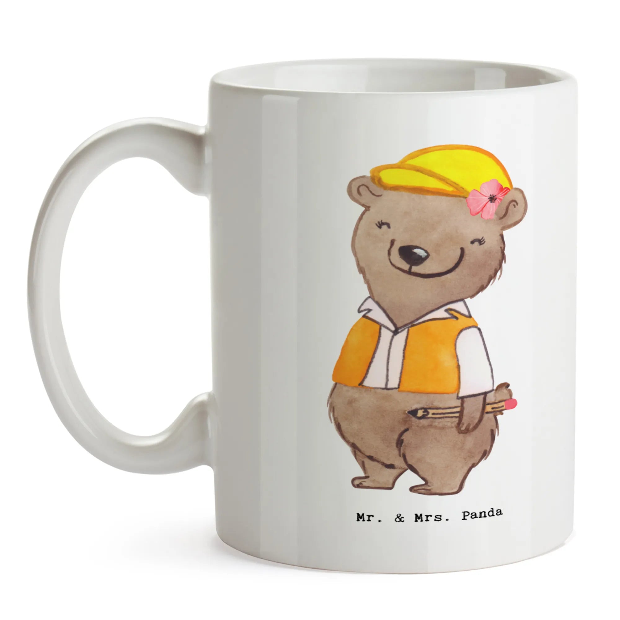 Allow us to introduce you to a delightful ceramic mug crafted with love by Mr. & Mrs. Panda, perfect for all the civil engineers out there! This charming coffee mug features a whimsical design that showcases a female civil engineer wearing a hard hat and a safety vest, a lovely touch that celebrates the spirit of the profession. Whether you're starting your career in civil engineering, celebrating a promotion, or looking for the perfect gift for a colleague, this mug is just the thing to make anyone smile!