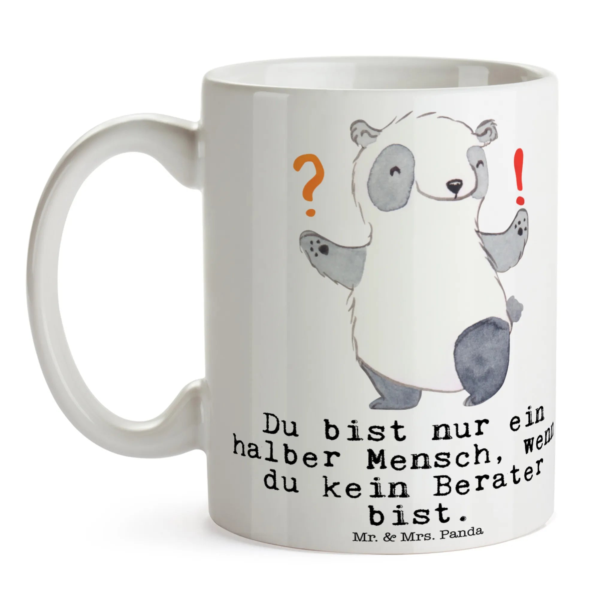 Verschenke ein Lächeln für den Berufsalltag: Die Tasse „Berater mit Herz“ aus der Berufe-Kollektion von Mr. & Mrs. Panda ist die liebevolle Geschenkidee für alle Beraterinnen und Berater. Das handgezeichnete Aquarellmotiv zeigt unseren süßen Panda im Berater-Charakter und wird ergänzt durch den frechen Spruch „Du bist nur ein halber Mensch, wenn du kein Berater bist.“ – ein perfekter Gesprächsstarter in jeder Kaffeepause.